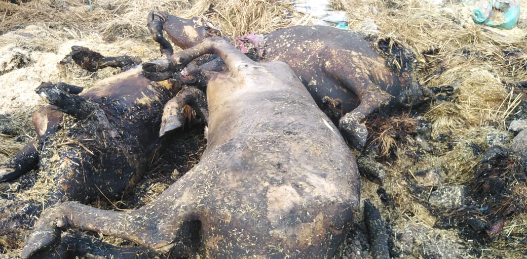 وأسفر الحريق عن حريق حظيرة مواشي وعدد ٢ عشة للمواشي وعدد ٣ شون تبن والشونة عبارة عن 20 حمل تبن لكل شونة وتقدر كل شونة بعشرين الف جنيه وتم حريق عدد٣ شون تبن وحرق عدد ٣ مواشي عمر كل ماشية من خمس لست سنوات وهي عبارة عن اتنين جاموس وعدد ١ بقرة وتقدر ثمن كل جاموسه من ١٠٠ إلي ١١٠ آلاف جنيه وعدد ١ بقرة تقدر من ٧٠ إلي ٩٠ ألف جنيه ، وتحرر المحضر اللازم عن الواقعة، وأخطرت النيابة العامة لإعمال شئونها ومباشرة التحقيقات واتخاذ الإجراءات القانونية اللازمة.
