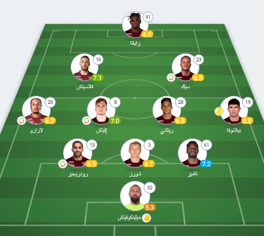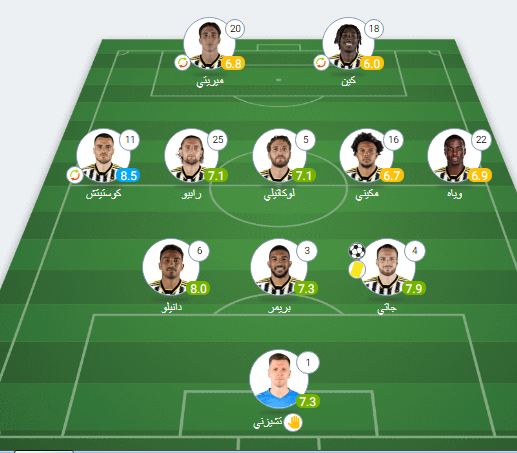 خط الوسط: وياه، مكيني، لوكاتيلي، رابيو، كوستيتش