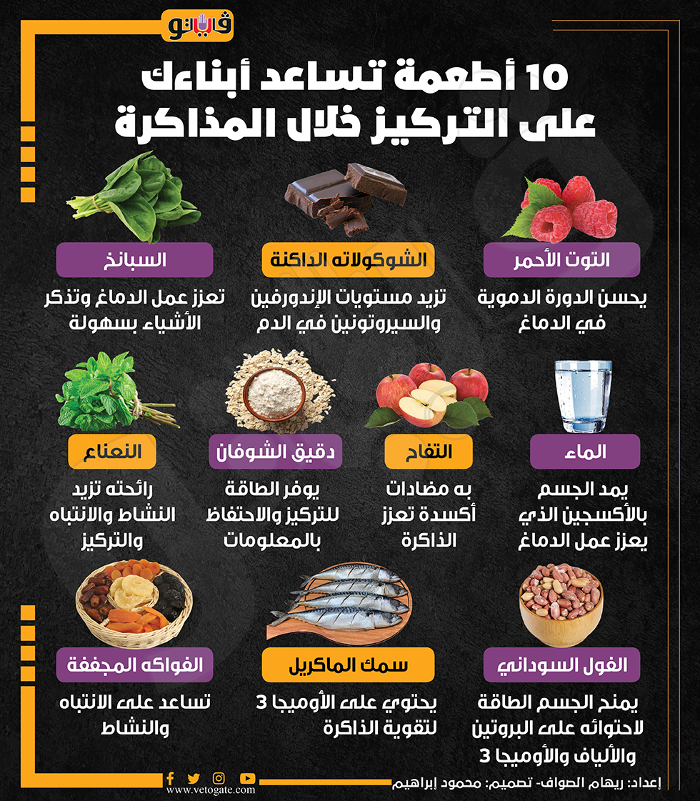 10 أطعمة تساعد أبناءك على التركيز خلال المذاكرة (إنفوجراف) الإثنين 30/أكتوبر/2023 - 07:24 م 10/30/2023 7:24:14 PM أطعمة صحية، فيتو ريهام الصواف شارك طباعة 18 حجم الخط شارك طباعة اطعمة تساعد على التركيز اطعمة تساعد ابنائك على التركيز اطعمة تزيد التركيز وتقوي الذاكرة اطعمة تعالج عدم التركيز اطعمة تقوي الذاكرة و التركيز اطعمة تزيد التركيز والذاكرة