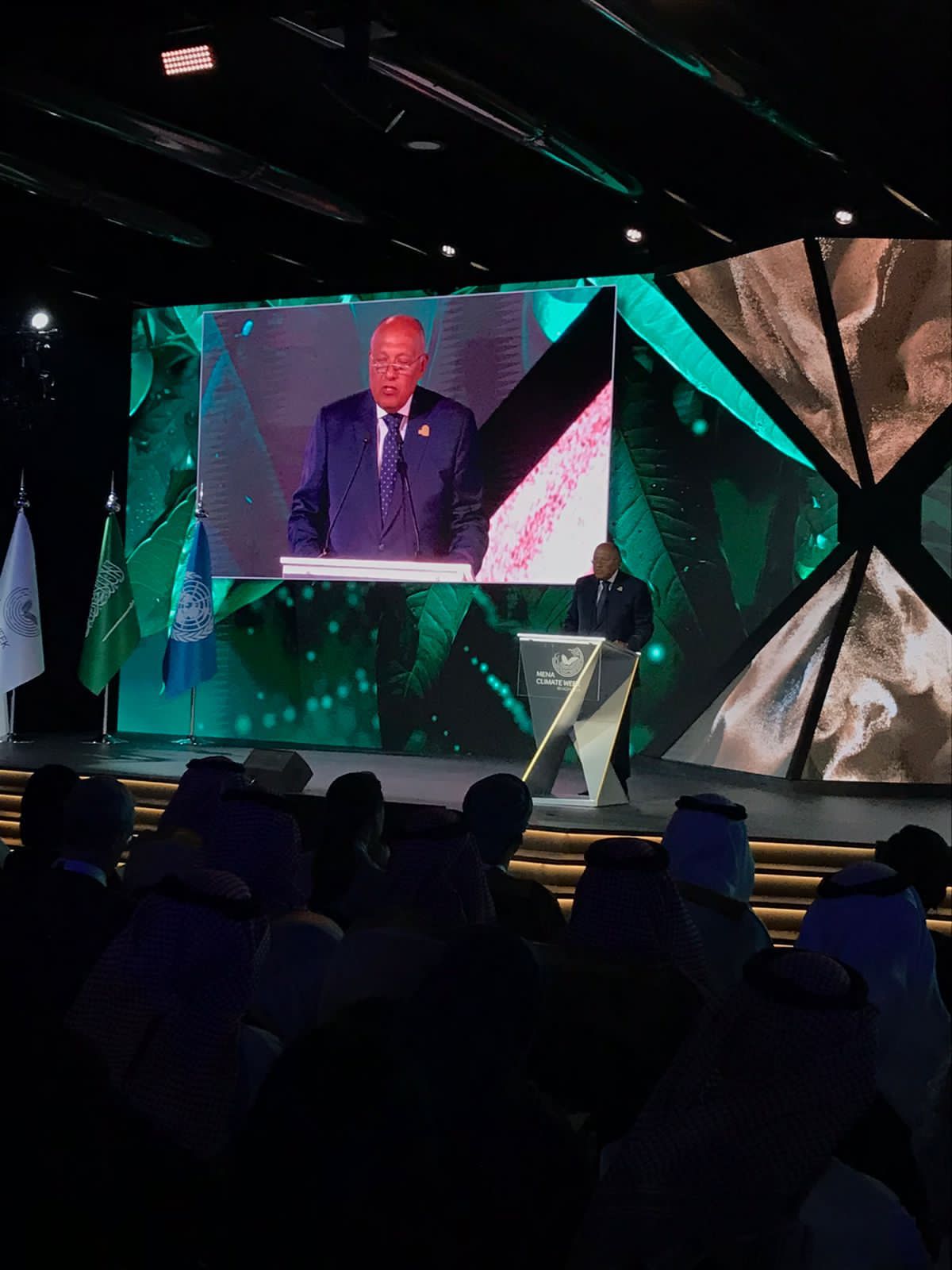 شارك سامح شكري وزير الخارجية اليوم الأحد ٨ أكتوبر ٢٠٢٣ بصفته رئيس الدورة الـ٢٧ لمؤتمر المناخ COP27 في أسبوع المناخ في منطقة الشرق الأوسط وشمال أفريقيا لعام 2023، والذي يعقد خلال الفترة من ٨ إلى ١٢ أكتوبر الجاري بالعاصمة السعودية الرياض.