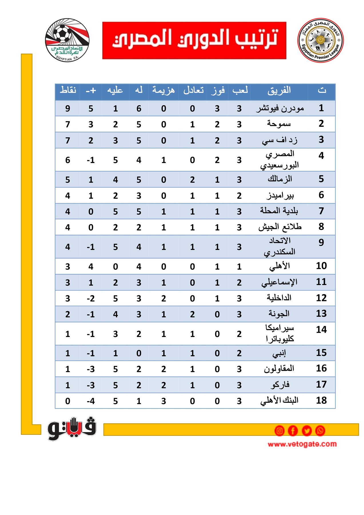 ترتيب الدوري المصري الممتاز قبل مباريات اليوم