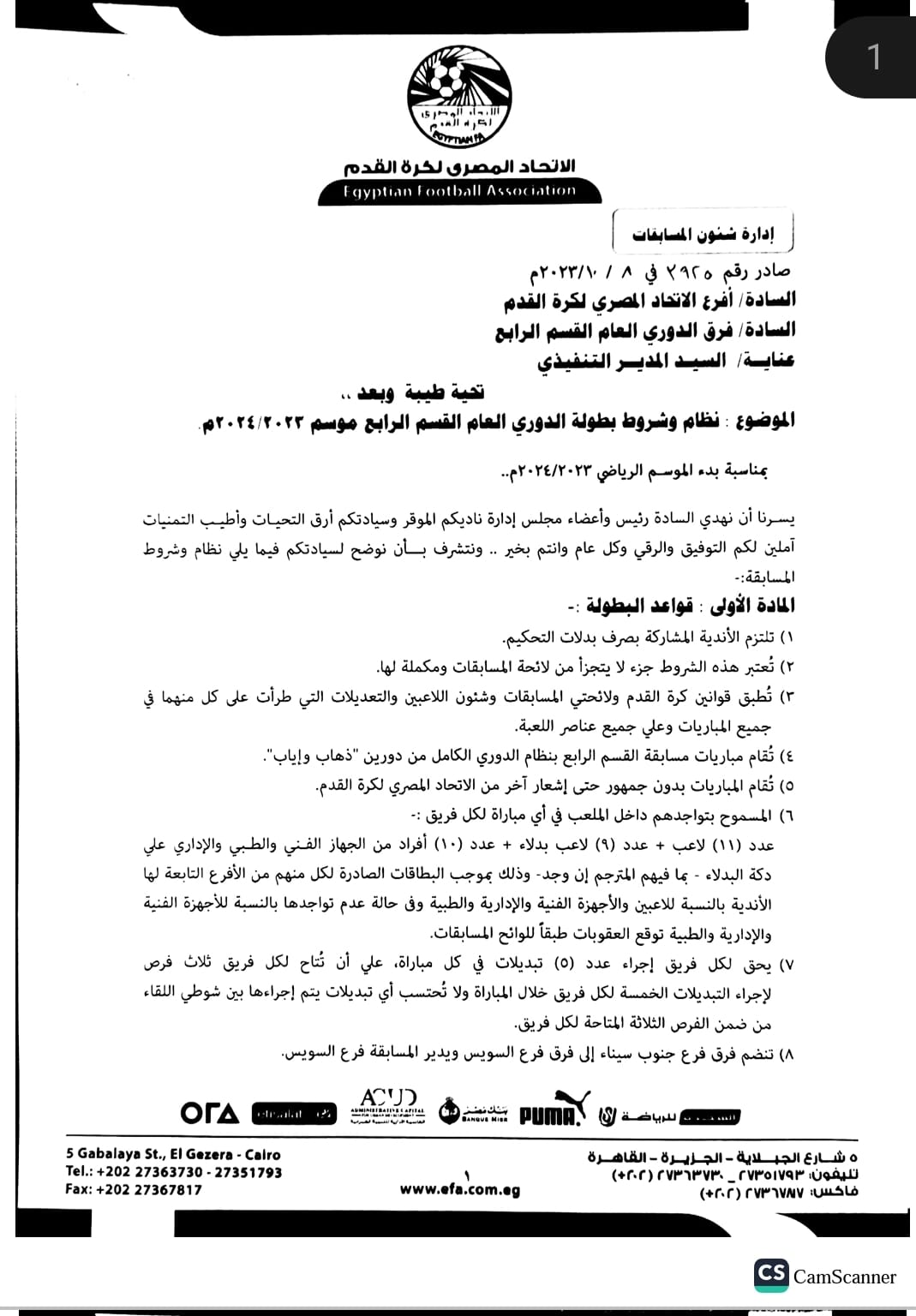 وكشف اتحاد الكرة عدد الفرق الصاعدة من دوري القسم الرابع إلي القسم الثالث كالتالي