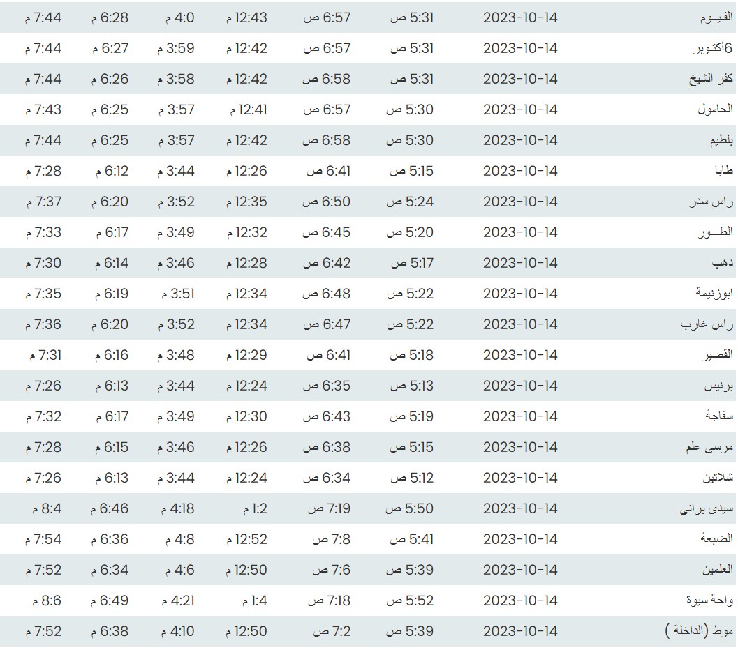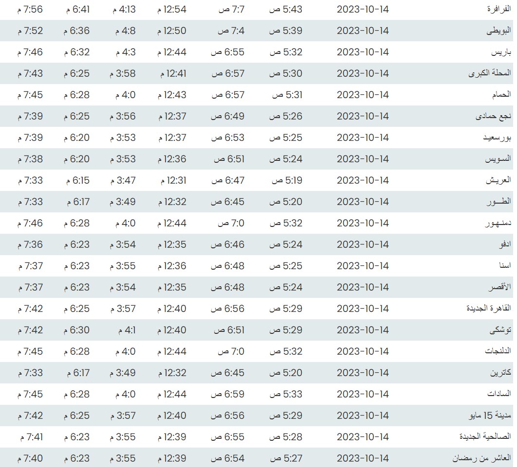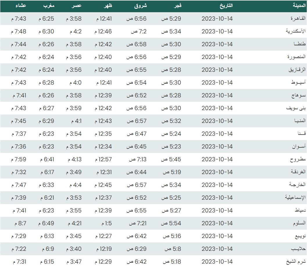 مواقيت الصلاة اليوم بتوقيت القاهرة