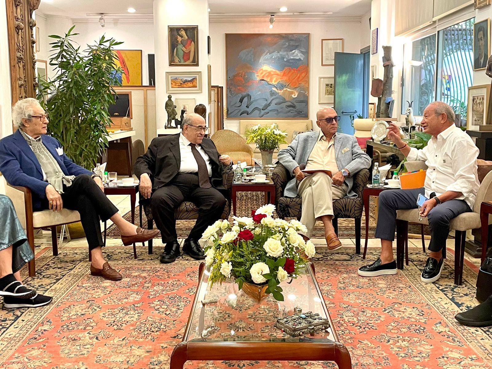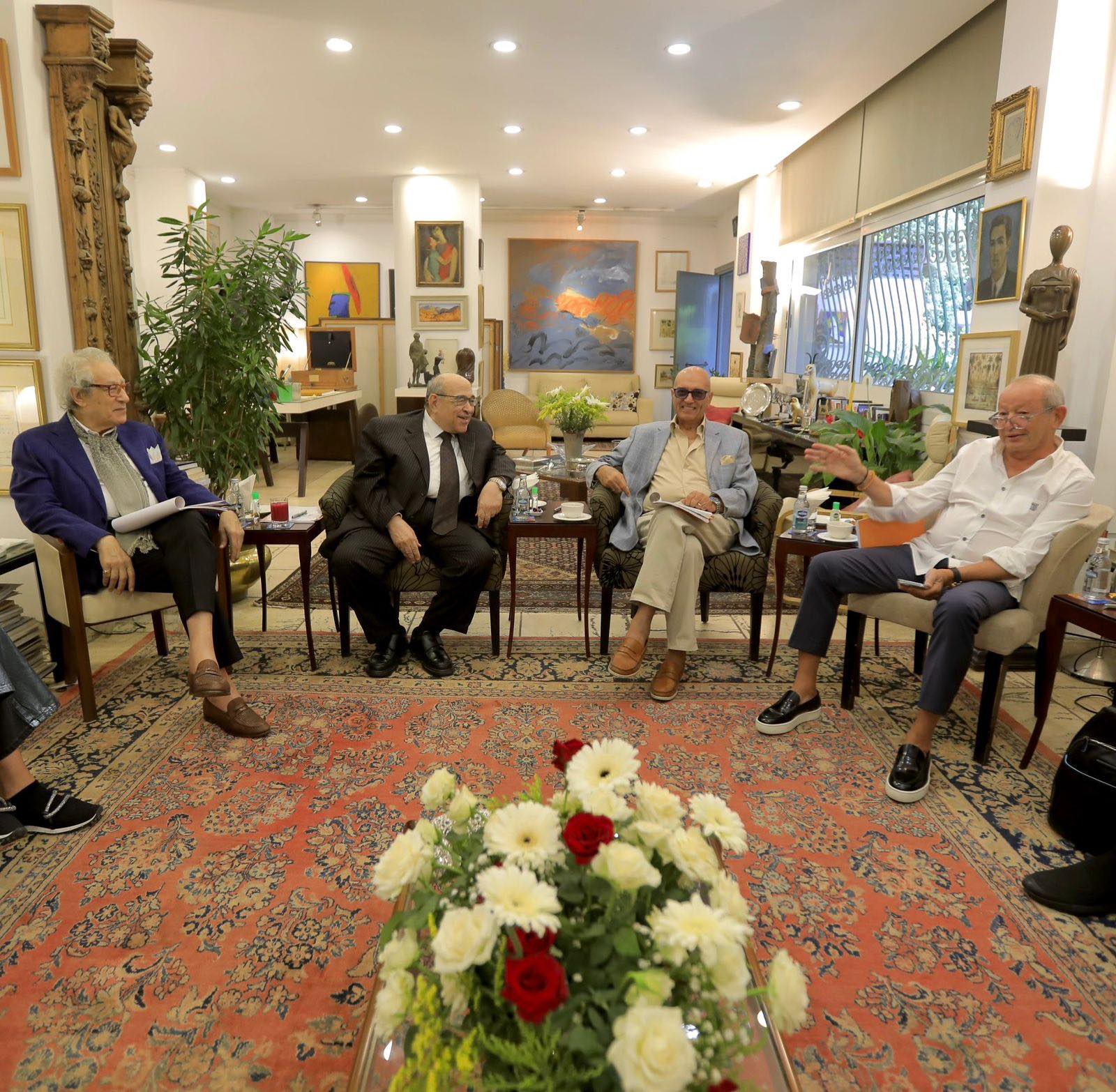 وحضر الاجتماع كل من الفنان فاروق حسني وزير الثقافة الأسبق، المهندس نجيب ساويرس رجل الأعمال، الدكتور مصطفى الفقي مدير مكتبة الإسكندرية السابق، الأديب محمد سلماوي، الدكتورة مؤمنة كامل، تامر عوف مستشار رئيس مجلس الوزراء الأسبق، الكاتبة إلهام أبو الفتح، الإعلامية چاسمين طه زكي، وإيناس لوقا، الدكتورة علية عبد الهادي عميد كلية العمارة والفنون جامعة البترا بالأردن سابقًا، الشاعر وائل السمري.