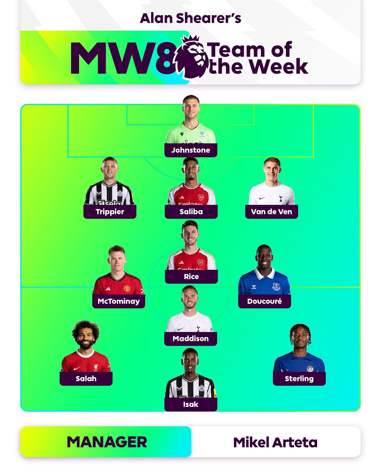 خط الهجوم: ستيرلينج ( تشيلسي ) محمد صلاح ( ليفربول ) إيزاك ( نيوكاسل )