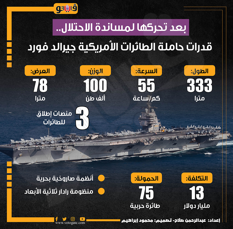 بعد تحركها لمساندة الاحتلال.. قدرات حاملة الطائرات الأمريكية جيرالد فورد (إنفوجراف) الثلاثاء 10/أكتوبر/2023 - 09:42 ص 10/10/2023 9:42:58 AM جيرالد فورد، فيتو عبدالرحمن صلاح شارك طباعة 18 حجم الخط شارك طباعة طوفان الأقصى جيرالد فورد قدرات جيرالد فورد فلسطين إسرائيل المقاومة الفلسطينية