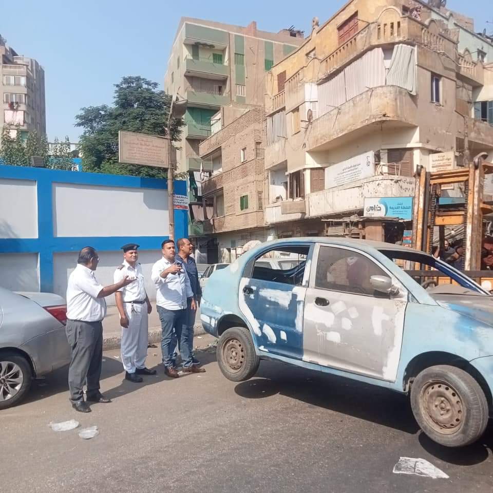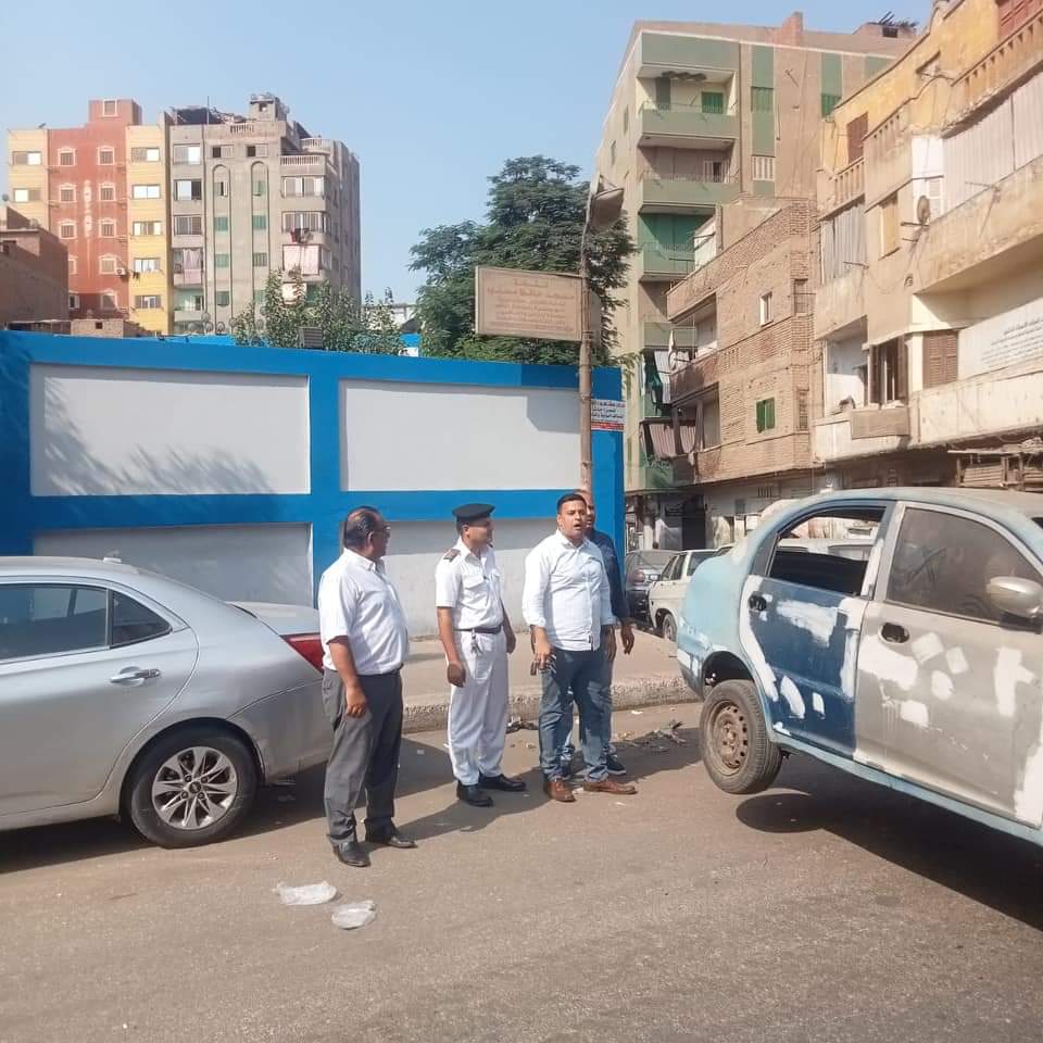رفع تعديات الباعة على الطريق العام والسيارات المتهالكة في حي الوراق (صور)