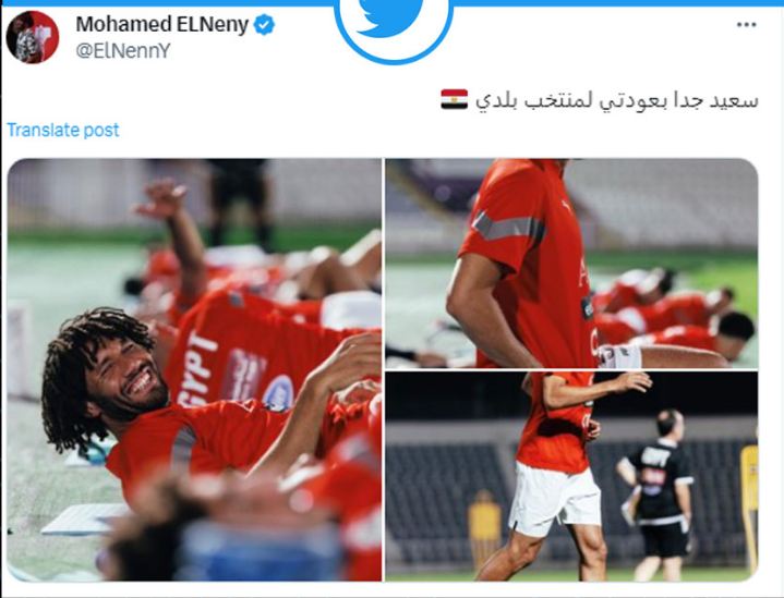 ونشر النني على حسابه الشخصي على موقع × “تويتر سابقا” بعض الصور له أثناء مشاركته في تدريبات منتخب مصر الوطني بالإمارات اليوم الإثنين، معلقا عليها (سعيد جدا بعودتي لمنتخب بلدي).