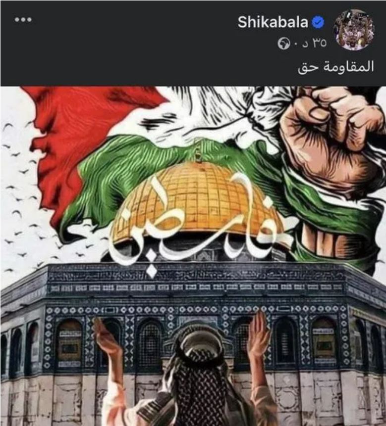 ونشر شيكابالا صورة للمسجد الأقصى عبر صفحته الرسمية على موقع التواصل الاجتماعي فيس بوك وكتب: "المقاومة حق".