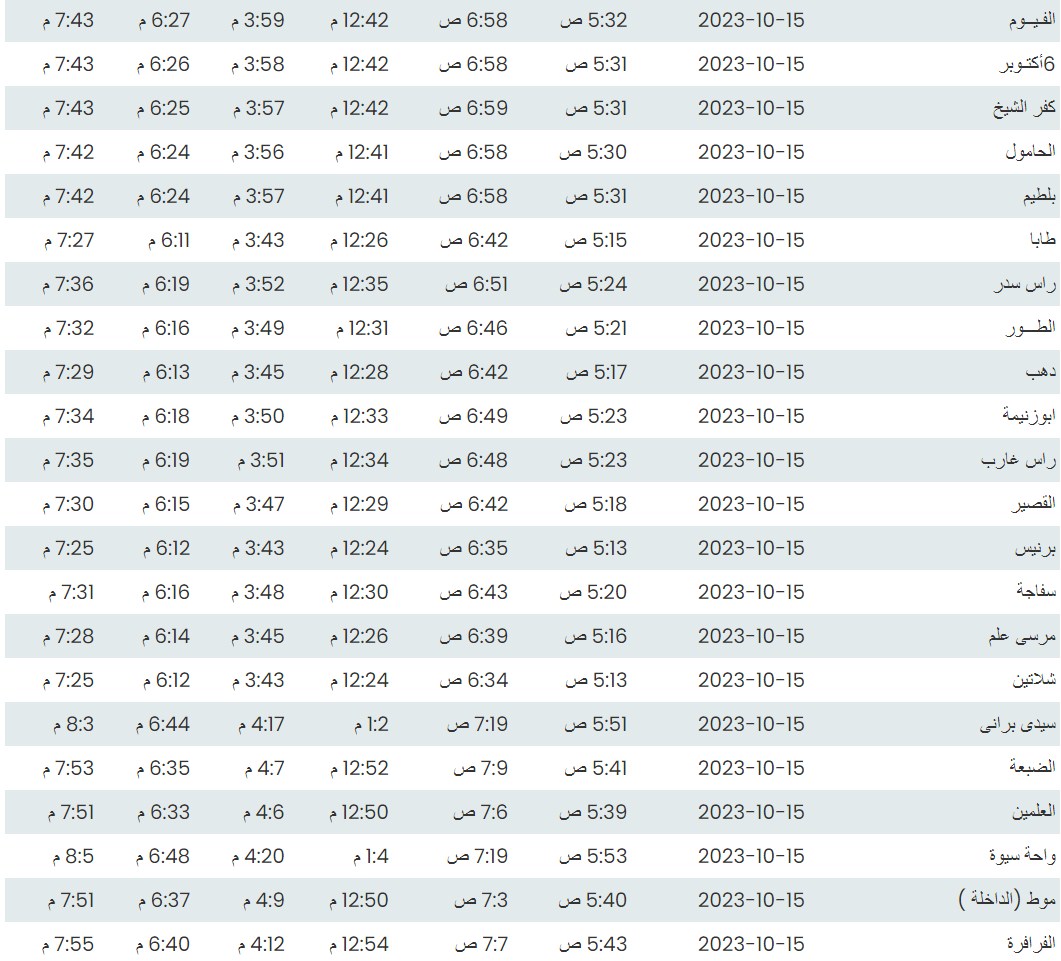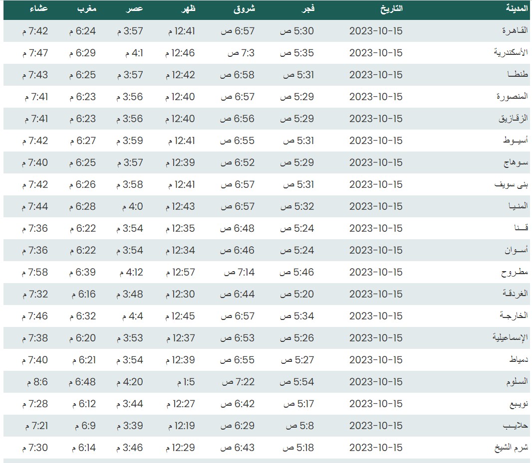 مواقيت الصلاة اليوم الأحد 15 - 10 - 2023 في القاهرة والمحافظات