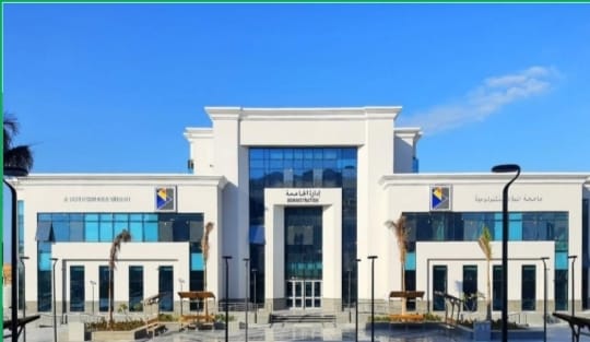 وأشار مدحت عوض إلى أن الدراسة بالجامعة بدأت أكتوبر الماضي بكلية الصناعة والطاقة، وكلية السياحة والفندقة، مضيفًا أن الجامعة تتكون من 9 مبان، وملعبين، وبها 20 قاعة ومعملًا، ومبنى مدرجات (4 مدرجات سعة الواحد 420 كرسيًا) ومبنى إدارة (35 مكتبًا إداريًّا) ومسجد، ومسرح (سعة 300 كرسي) وكافتيريا (سعة 200 طالب) و3 مباني سكنية.