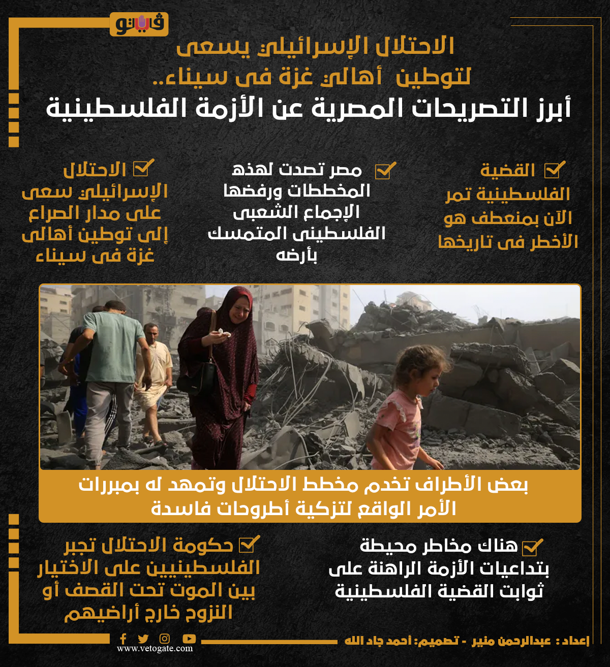 الاحتلال الإسرائيلي يسعى لتوطين أهالي غزة فى سيناء.. أبرز التصريحات المصرية عن الأزمة الفلسطينية (إنفوجراف) الثلاثاء 10/أكتوبر/2023 - 12:30 م 10/10/2023 12:30:07 PM قطاع غزة، فيتو عبدالرحمن منير شارك طباعة 18 حجم الخط شارك طباعة طوفان الأقصى العدوان الاسرائيلي علي غزة غزة فلسطين الحدود المصرية