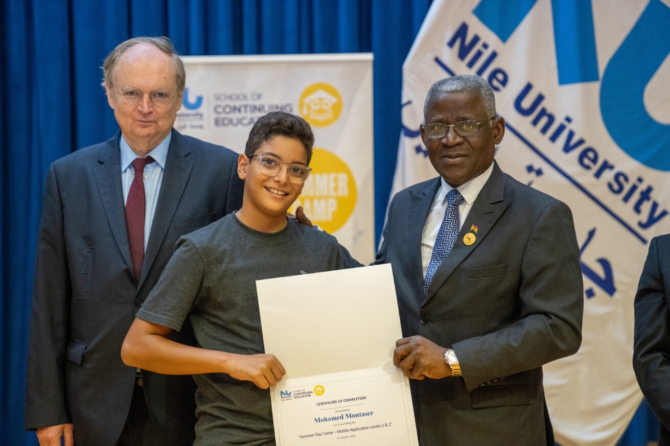 نظمت كلية التعليم المستمر بجامعة النيل الأهلية، برئاسة الدكتور وائل عقل، رئيس الجامعة، حفل تخرج دفعة جديدة من المشاركين في فعاليات المعسكر الصيفي للشباب والذي نظمته الكلية خلال فترة الإجازة الصيفية واستهدفت فيه الأعمار السنية من 6 إلى 18 سنة.