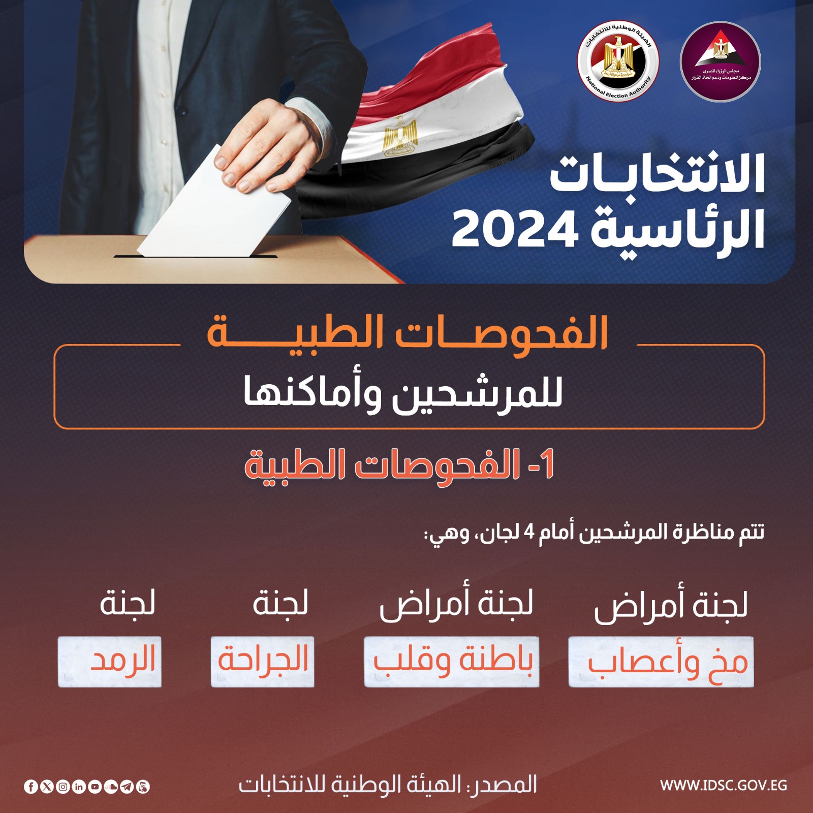 الانتخابات الرئاسية 2024، الفحوصات الطبية للمرشحين وأماكنها (إنفوجراف)