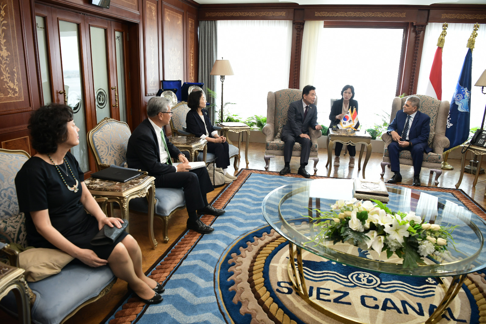 وأشاد رئيس الهيئة بالتعاون المثمر والممتد الذي يجمع هيئة قناة السويس بالشركات والترسانات الكورية في مجالات تبادل الخبرات ونقل التكنولوجيا المتقدمة لاسيما في مجال صناعة وبناء الوحدات البحرية، مشيرا في هذا الصدد إلى التعاون البناء مع كوريا الجنوبية والذي أثمر عن بناء أحدث أحواض بناء السفن بترسانة بورسعيد البحرية وهو الحوض العائم" فخر القناة" بحمولة ٣٥ ألف طن.