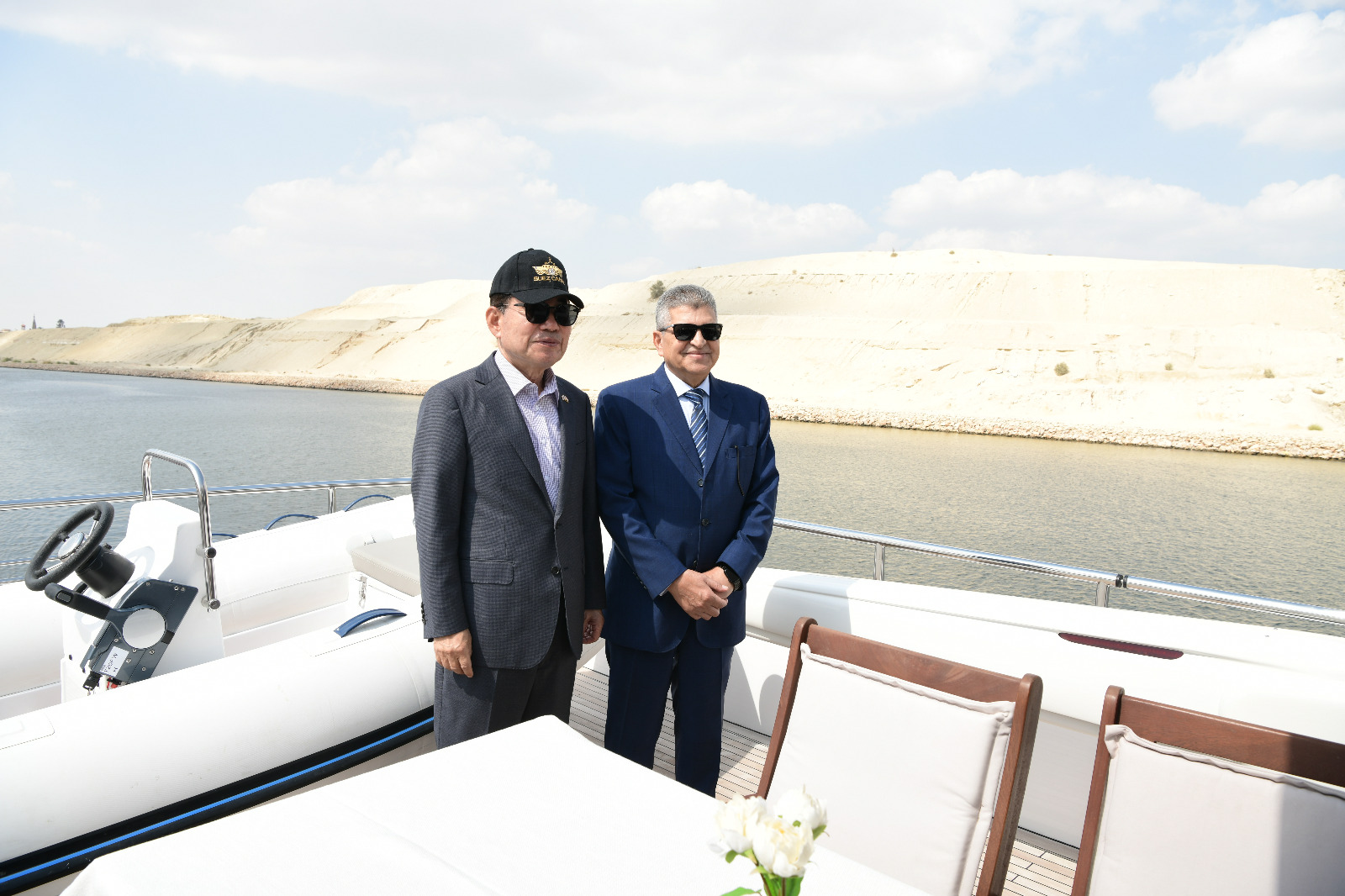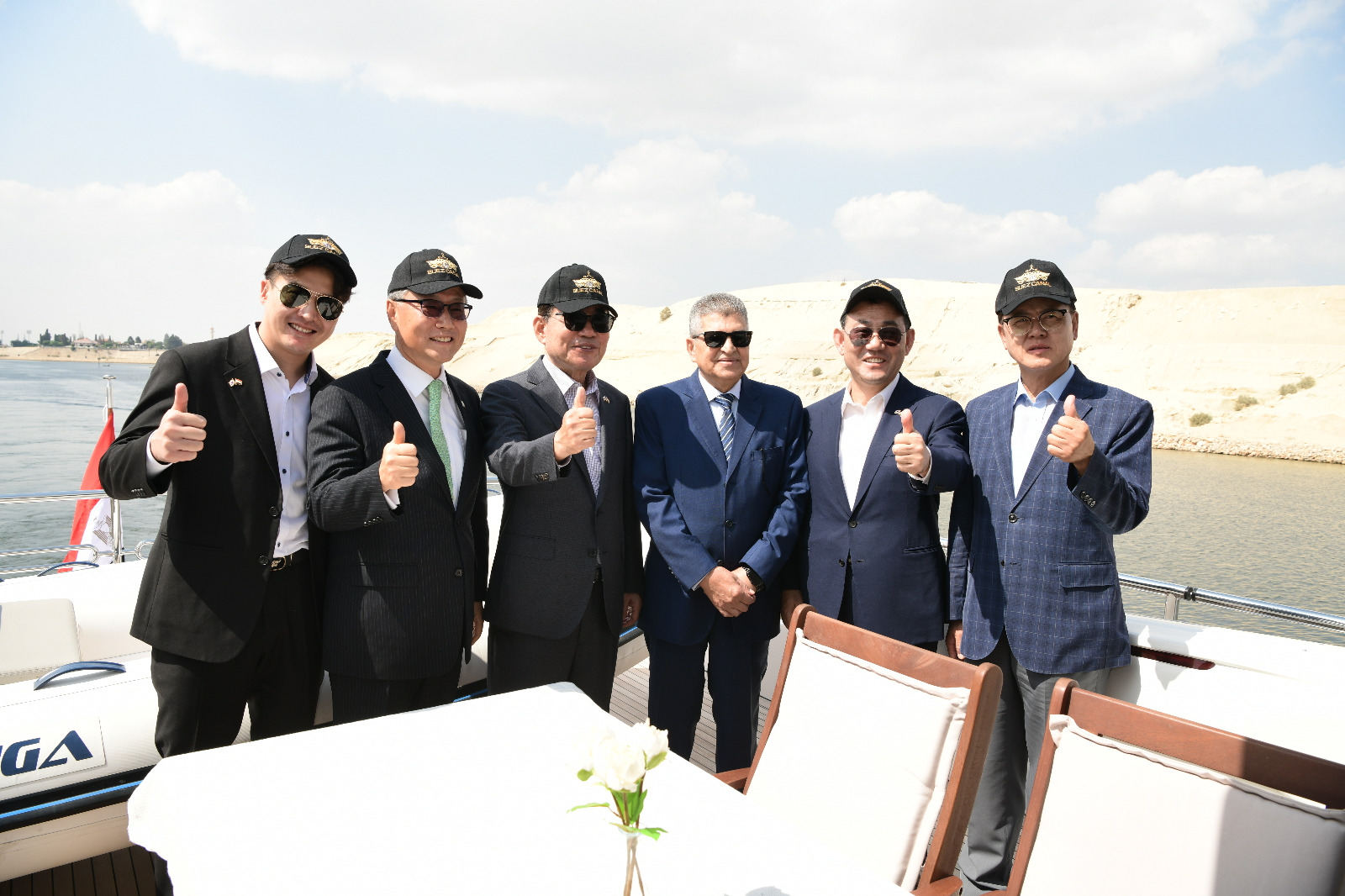 عقب ذلك، توجه الفريق أسامة ربيع وكيم جين بيو رئيس الجمعية الوطنية الكورية للقيام جولة بحرية في قناة السويس الجديدة لمشاهدة حجم الإنجاز على أرض الواقع، تلاها التوجه لمبنى المارينا الجديدة.