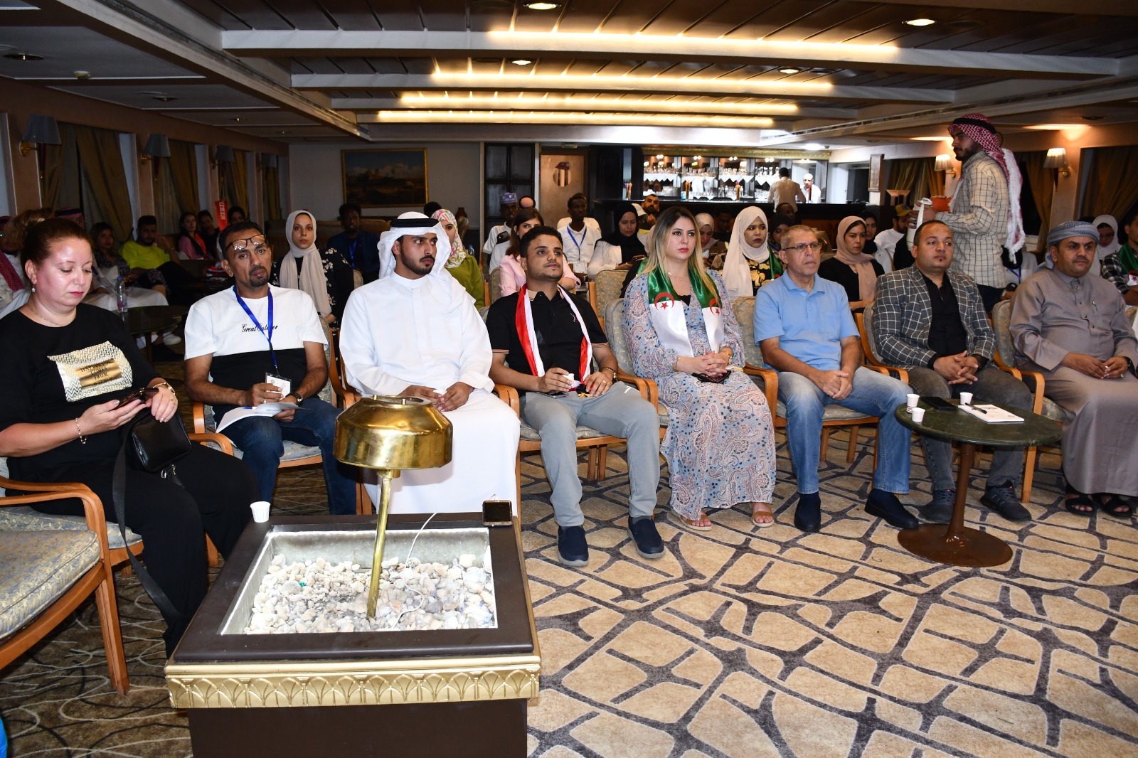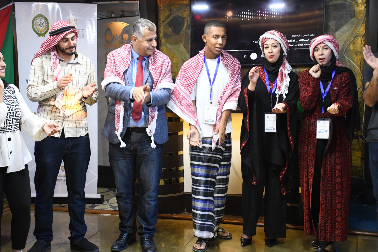 واحتفل اليوم شباب الوفد الأردنى للمملكة الأردنية الهاشمية، ووفد دولة الإمارات العربية المتحدة باليوم الوطني لكل منهما، استعرضوا خلالها المواقع الجغرافية والتراثية والملابس والمأكولات وكل ما يعبر عن الدولتين من خلال فيديوهات توضيحية، بالإضافة إلي الزي الوطني ومجموعة من العروض الاستعراضية، والأماكن السياحية والعلاجية.