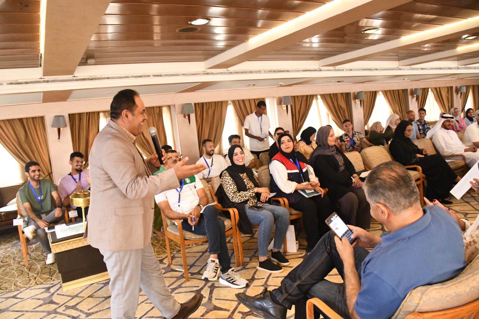 الوفود العربية تتناقش حول التطوع الابتكاري والإبداعي في سفينة النيل للشباب