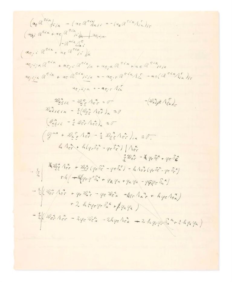 وتحتوى المخطوطة المكتوبة باللغة الألمانية معادلتين ورسمًا بيانيًا يوضح بنية استمرارية الزمكان، إضافة إلى صفحتين تضمان صيغًا علمية.