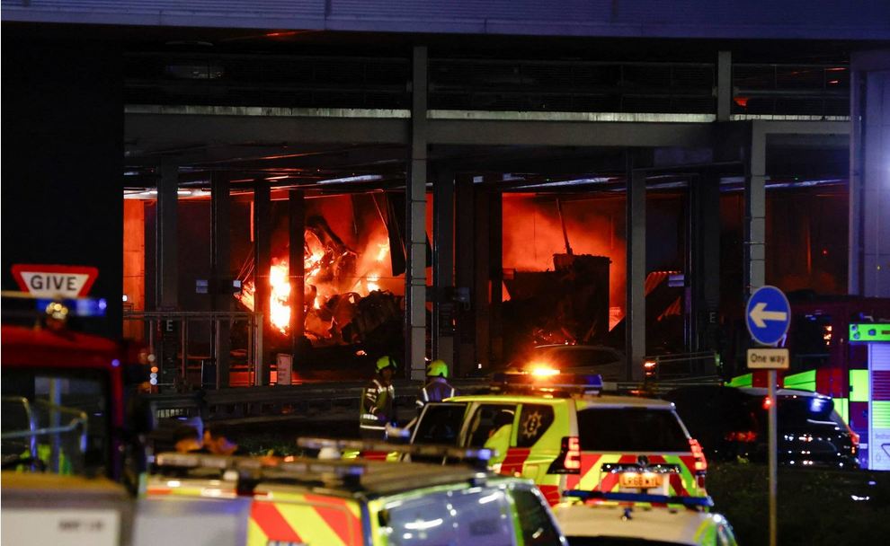 حريق ضخم في مطار لندن لوتن وتعليق جميع الرحلات الجوية