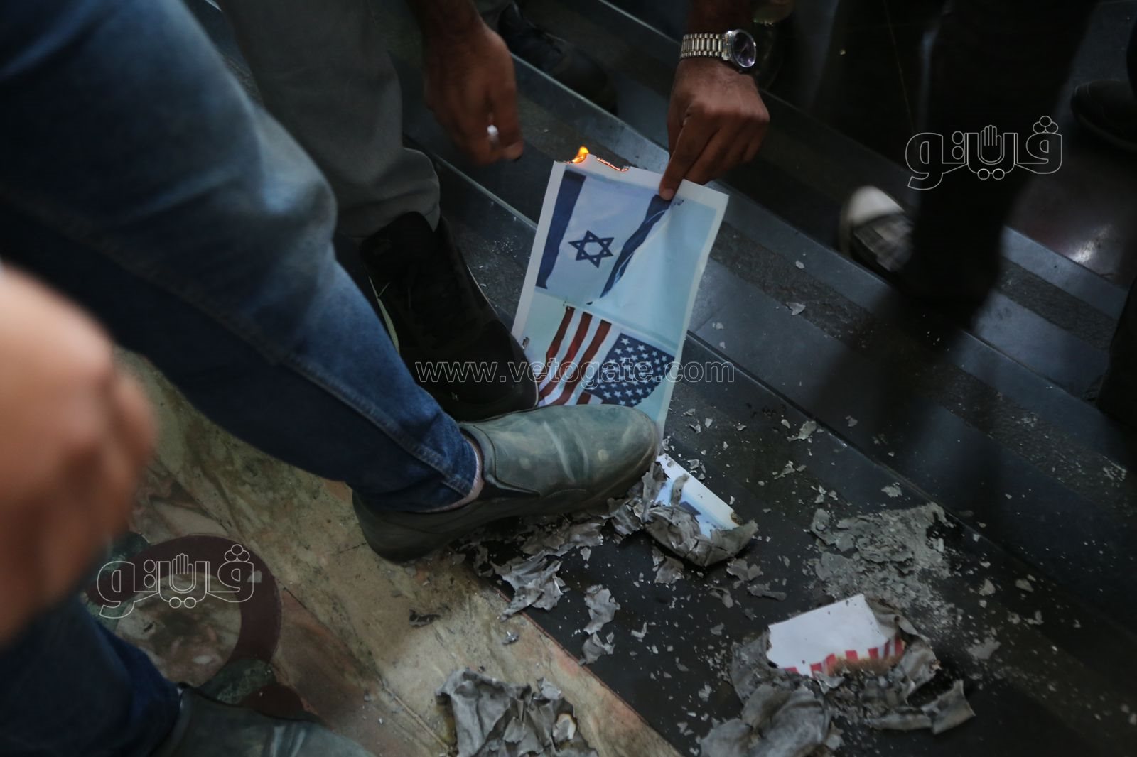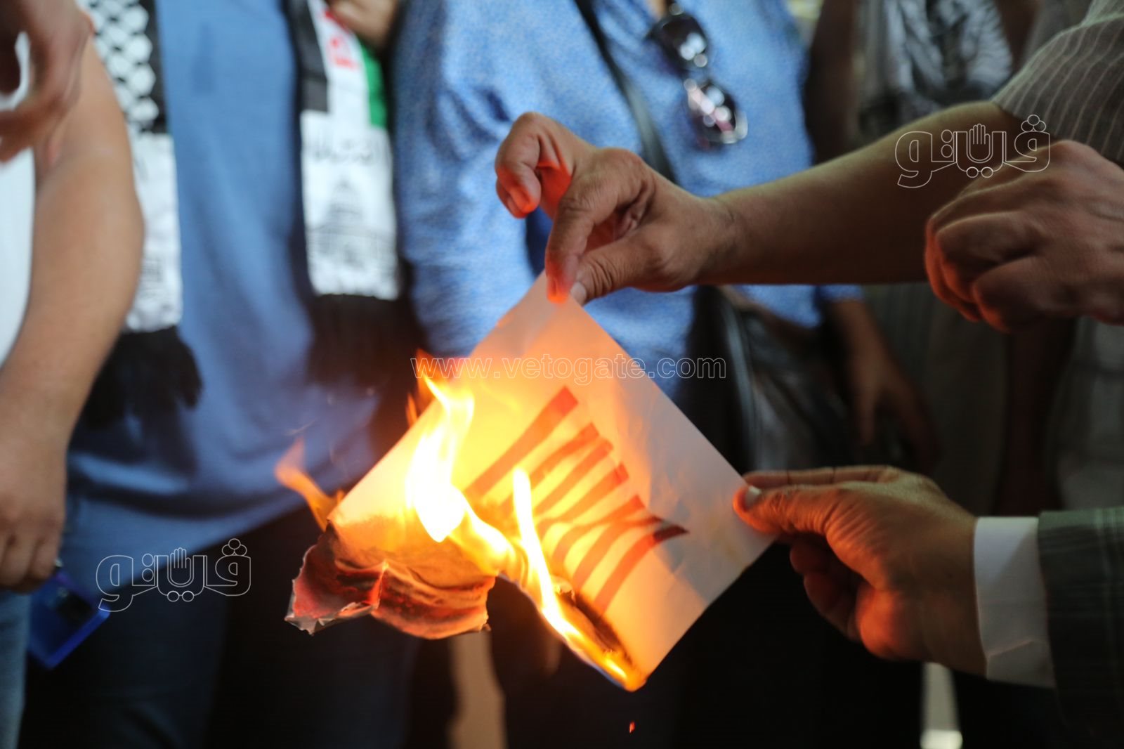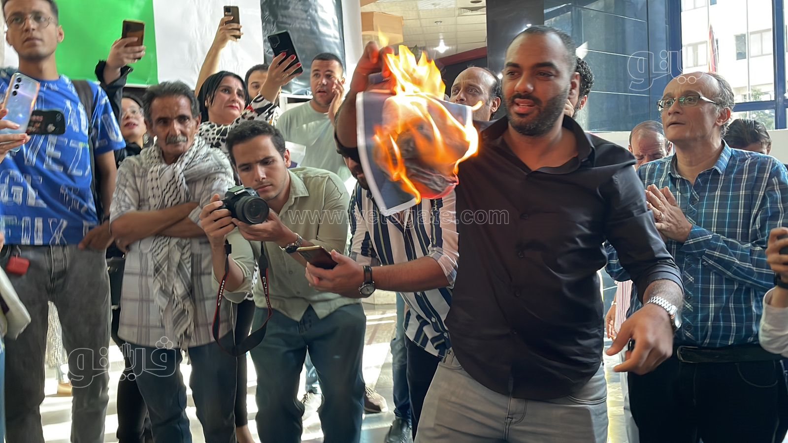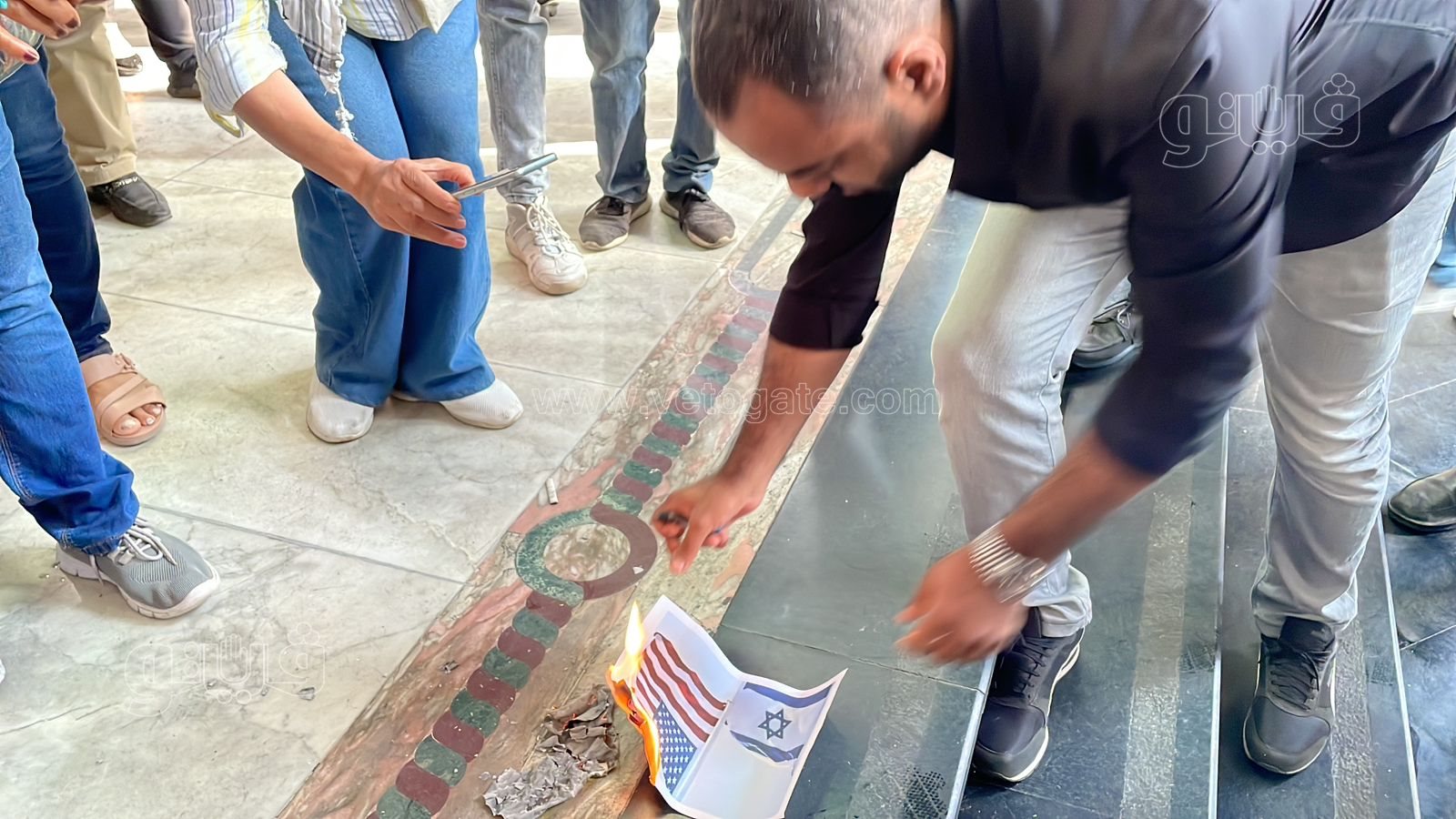 حرق علم إسرائيل ضمن فعاليات يوم التضامن مع فلسطين بنقابة الصحفيين (فيديو وصور)