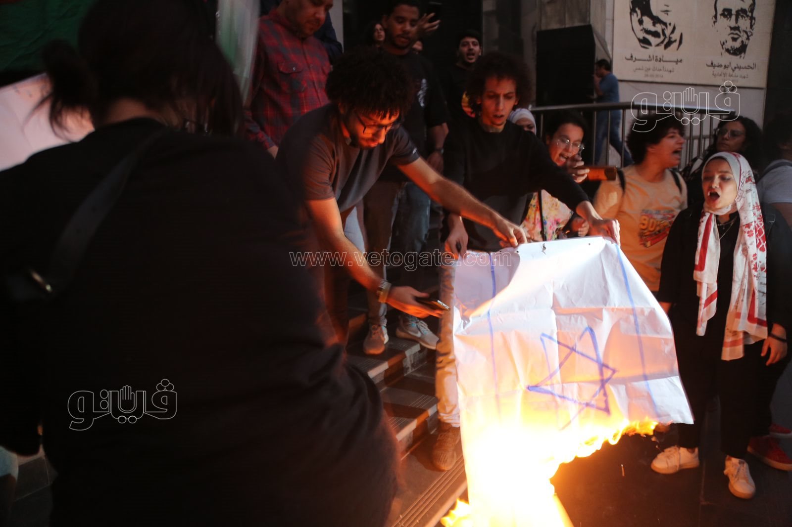 وهتف المحتجون: "من نقابة الصحفيين مش ناسينك يا فلسطين"، “تسقط تسقط إسرائيل”، "فلسطين قالتها قوية رغم أنف الصهيونية"، “بنرددها جيل ورا جيل بنعاديكي يا إسرائيل”، “المقاومة واجب على الكل”، "بالكلمة والقلم الجاف الصحافة مش بتخاف".
