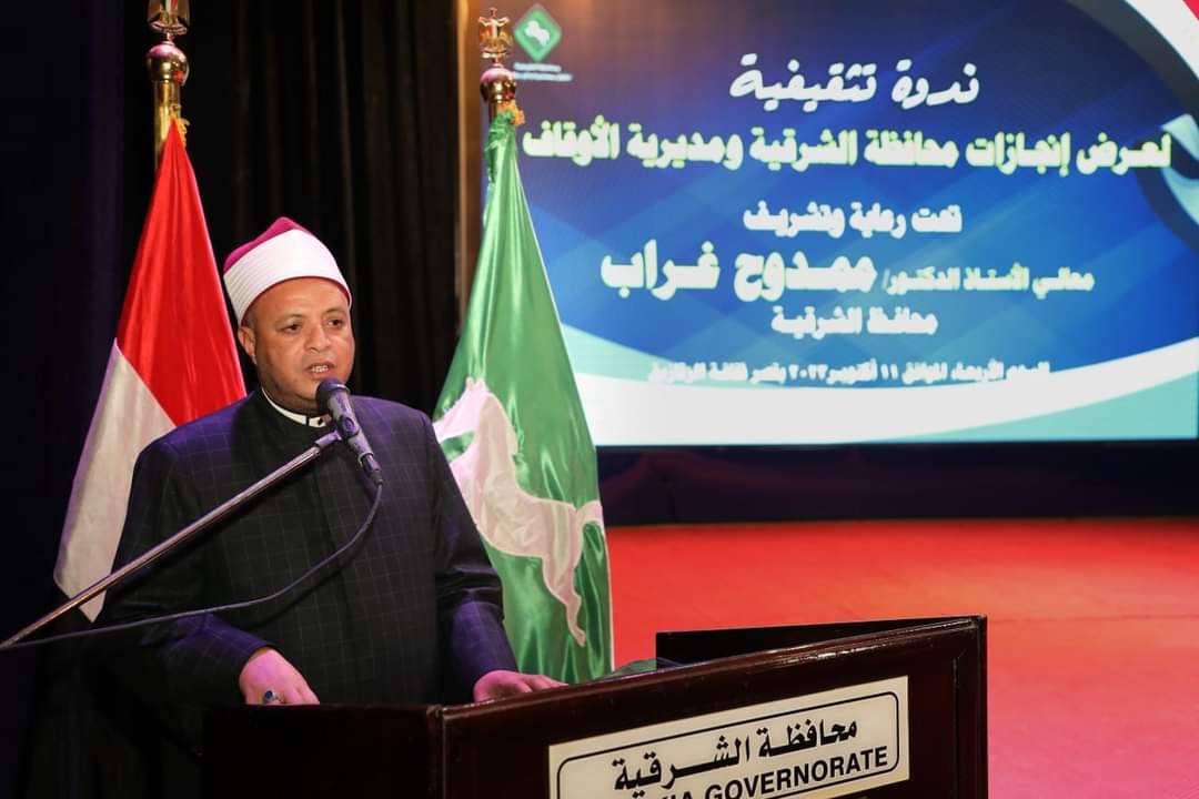 كما انطلقت أولى فعاليات برنامج البناء الثقافي لأئمة أوقاف الشرقية اليوم الأربعاء 11/ 10/ 2023م، حيث شارك الأستاذ الدكتور ممدوح غراب محافظ الشرقية فعاليات الندوة التثقيفية التي نظمتها مديرية أوقاف الشرقية بالتعاون مع المحافظة لاستعراض مجهودات الدولة المصرية في كافة المجالات والقطاعات الهندسية والدعوية للنهوض بالخطاب الديني ونشر دعائم الفكر الوسطي المستنير، وذلك بقصر ثقافة الزقازيق في حضور المهندسة لبنى عبد العزيز نائبة المحافظ، والمهندس سامي معجل السكرتير العام المساعد للمحافظة، والشيخ مجدي بدران وكيل وزارة الأوقاف، والمستشار العسكري للمحافظة، والدكتور محمد حامد وكيل مديرية الأوقاف، وعدد من مديري إدارات الأوقاف والأئمة والواعظات بالمديرية.