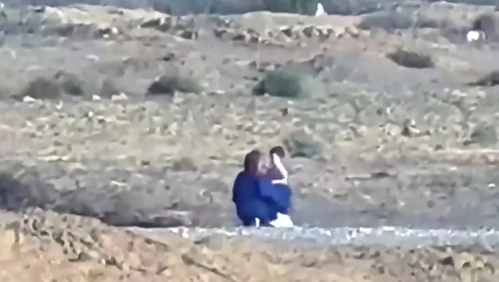وأظهر مقطع فيديو امرأة ترتدي قميصًا أزرق اللون مع طفلين يبتعدون عن منطقة نُصبت فيها أسلاك شائكة، برفقة ثلاثة عناصر من الحركة.