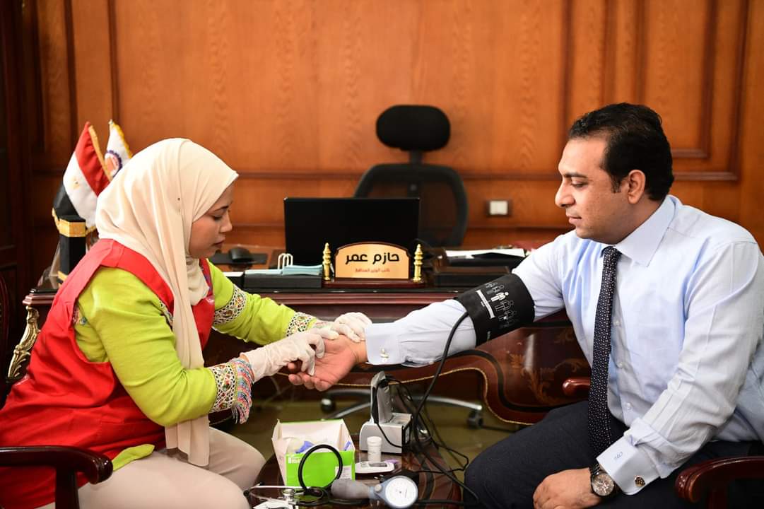 أجرى الدكتور حازم عمر نائب محافظ قنا وعدد من المسؤولين التتفيذيين بديوان عام محافظة قنا الكشف الطبي بحملة ١٠٠ مليون صحة.