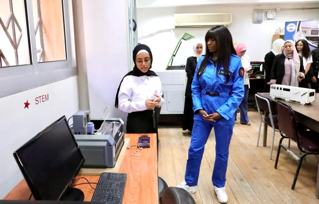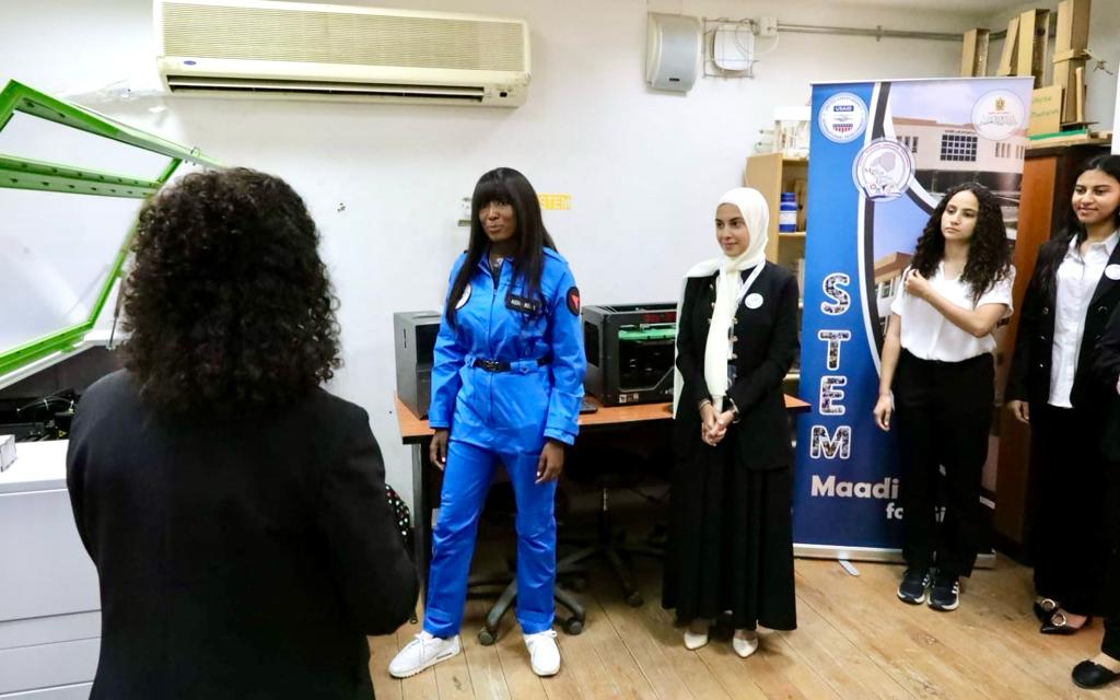 مدرسة المتفوقات بالمعادي تستقبل رائدة الفضاء الأمريكية عائشة بو