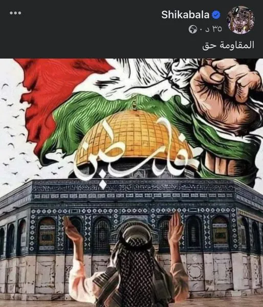ونشر شيكابالا صورة للمسجد الأقصى عبر صفحته الرسمية على موقع التواصل الاجتماعي فيس بوك وكتب: "المقاومة حق".