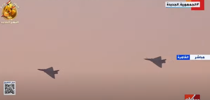 اشتركت في العرض مقاتلات إف 16 فالكون من مقاتلات الجيل الرابع التي تتميز بالقدرة العالية علي المناورة، وطائرة الإنذار المبكر يرافقها طائرتا ميراج، وطائرات الرافال من الجيل الرابع الأكثر تطورا، وميج 29.