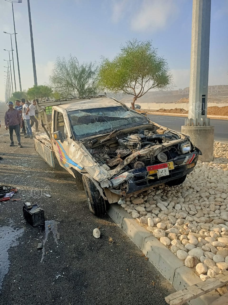 3 صور ترصد إصابة 7 عمال في انقلاب سيارة ربع نقل في الطريق الأوسطي