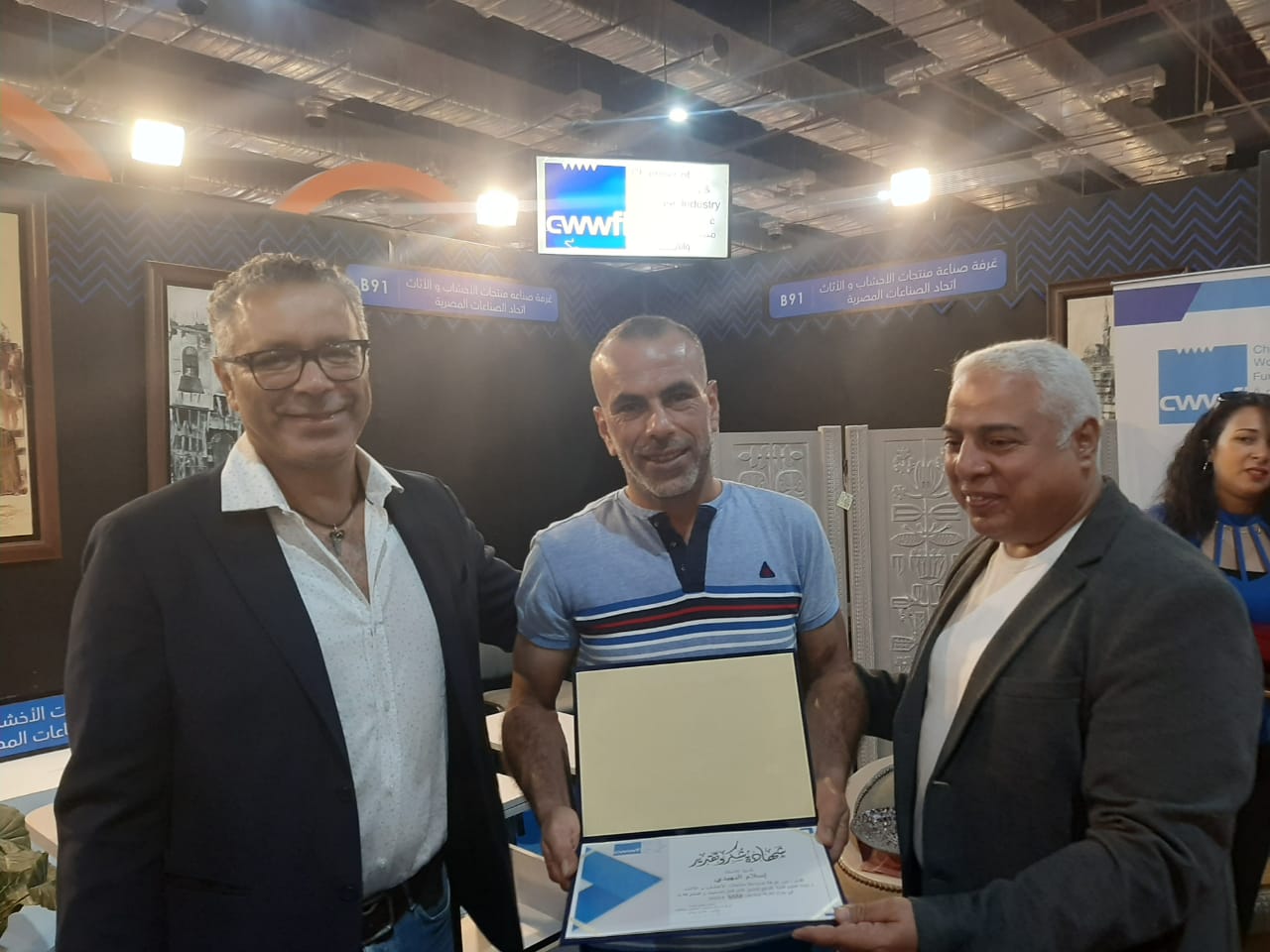 كرم المهندس طارق حبشي رئيس مجلس إدارة غرفة صناعة منتجات الأخشاب والأثاث باتحاد الصناعات والمهندس علاء نصر عضو مجلس الإدارة والمشرف علي مشاركة الغرفة بالمعرض عددا من مصنعي الأثاث المشاركين بمعرض تراثنا في دورته الرابعة 2023، في جناح غرفة صناعة منتجات الأخشاب والأثاث، وذلك لتميزهم في تصنيع قطع أثاث والمشاركة بها في معرض تراثنا 2023.