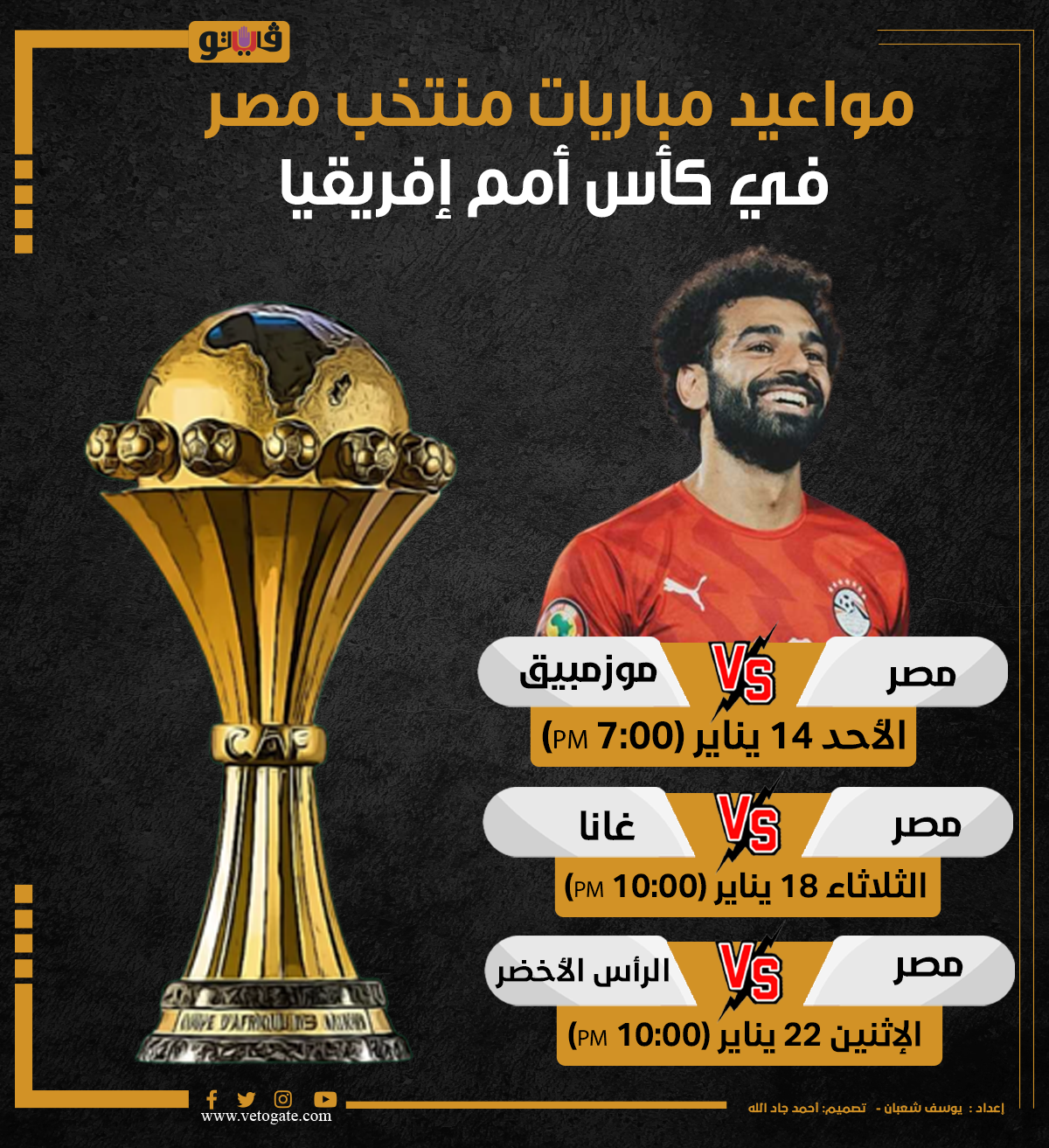 مواعيد مباريات منتخب مصر في كأس أمم إفريقيا (انفوجراف) السبت 14/أكتوبر/2023 - 11:34 ص 10/14/2023 11:34:52 AM مواعيد مباريات منتخب مصر في كأس أمم إفريقيا، فيتو يوسف شعبان شارك طباعة 18 حجم الخط شارك طباعة منتخب مصر بطولة أمم افريقيا للكبار مواعيد مباريات منتخب مصر أمم أفريقيا 2024 بكوت ديفوار موزمبيق غانا الرأس الأخضر