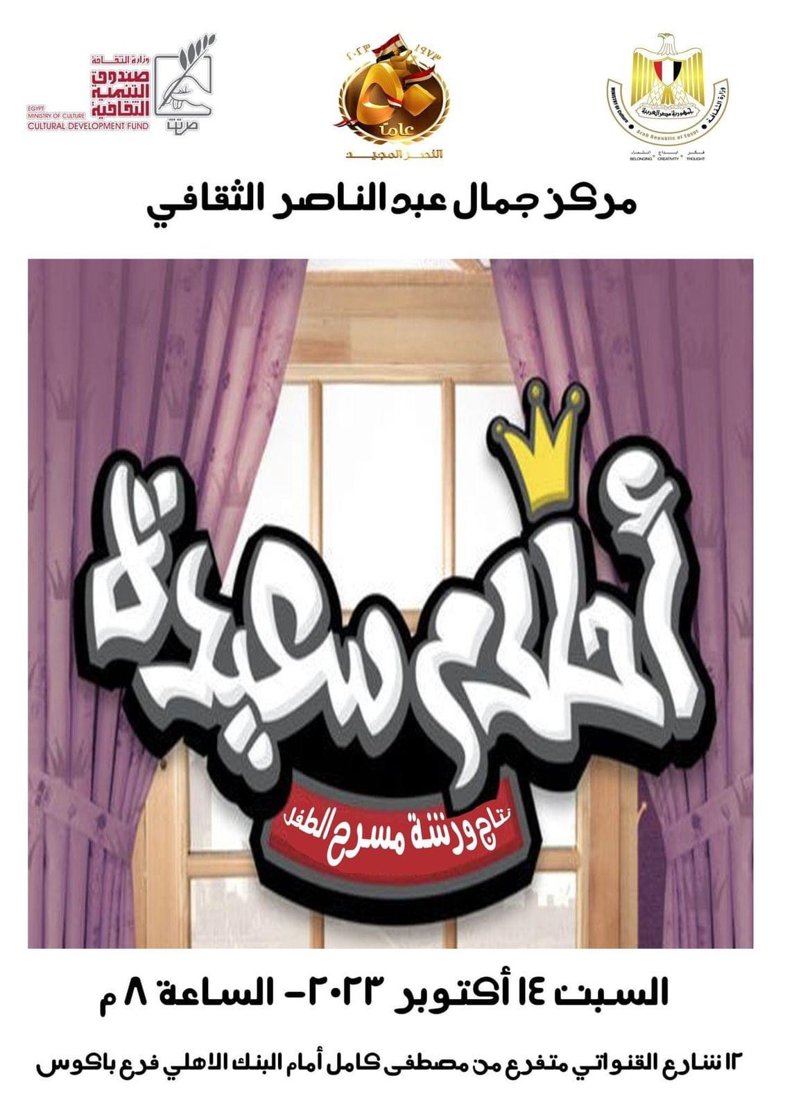 يختتم مركز جمال عبد الناصر الثقافي بالاسكندرية والتابع لقطاع صندوق التنمية الثقافية نشاطه الصيفي، وذلك فى الثامنة من مساء اليوم السبت، بالعرض المسرحي "أحلام سعيدة".
