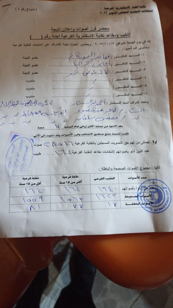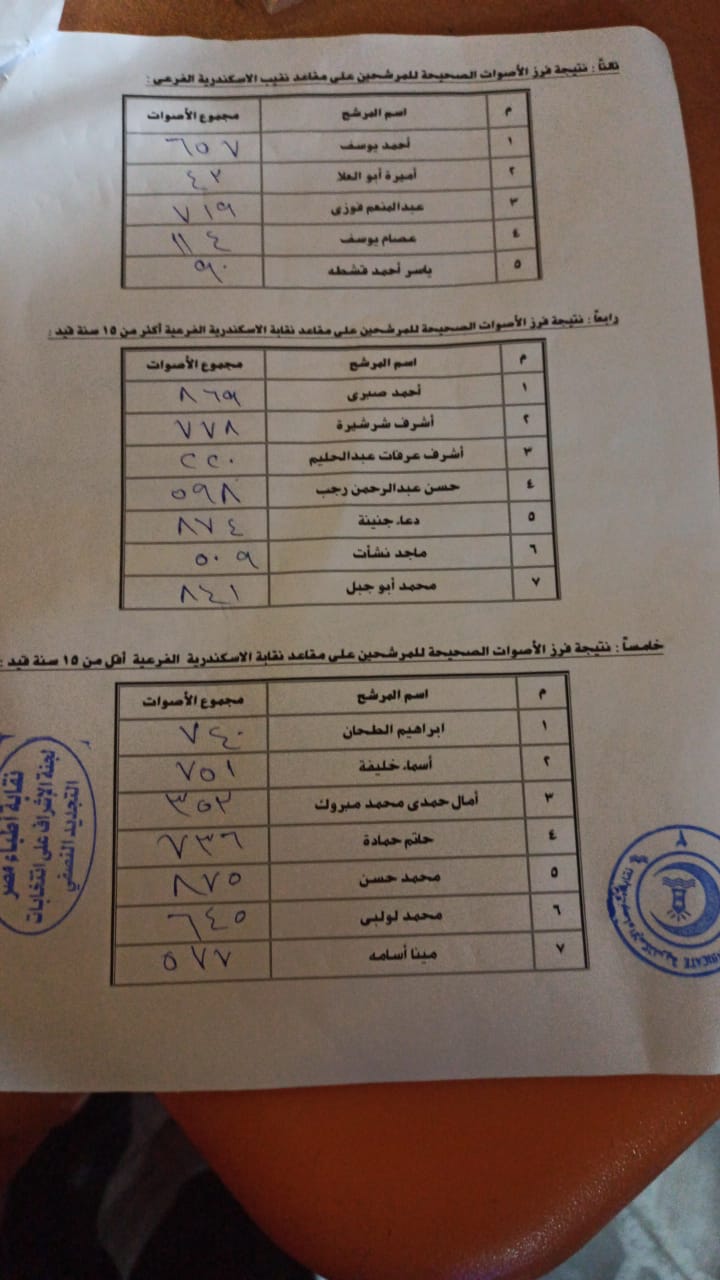 فوز عبد المنعم فوزي بمنصب نقيب الأطباء بالإسكندرية، النتائج الكاملة