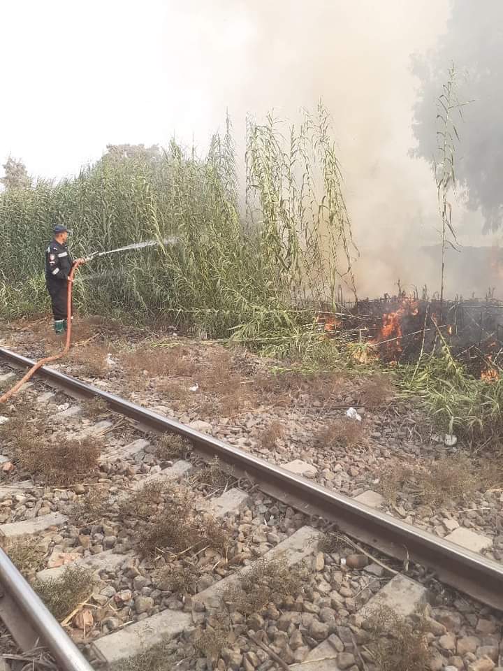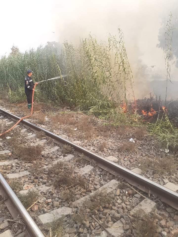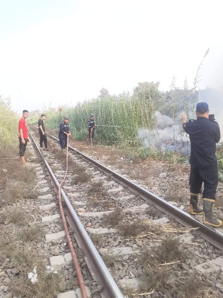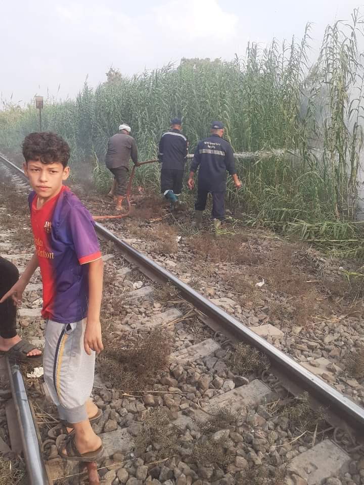 حريق بجوار شريط السكة الحديد بالسنطة في الغربية (صور)