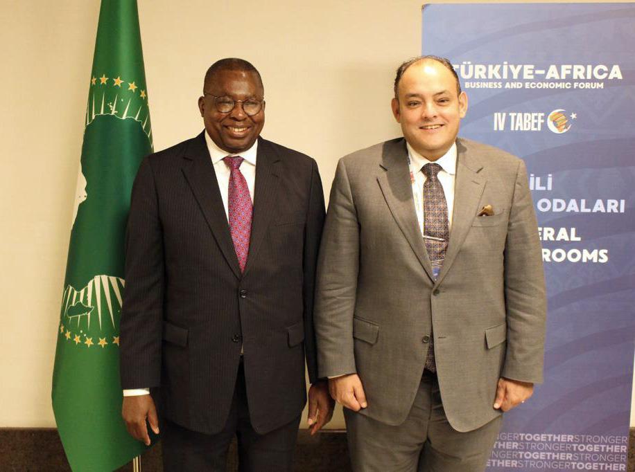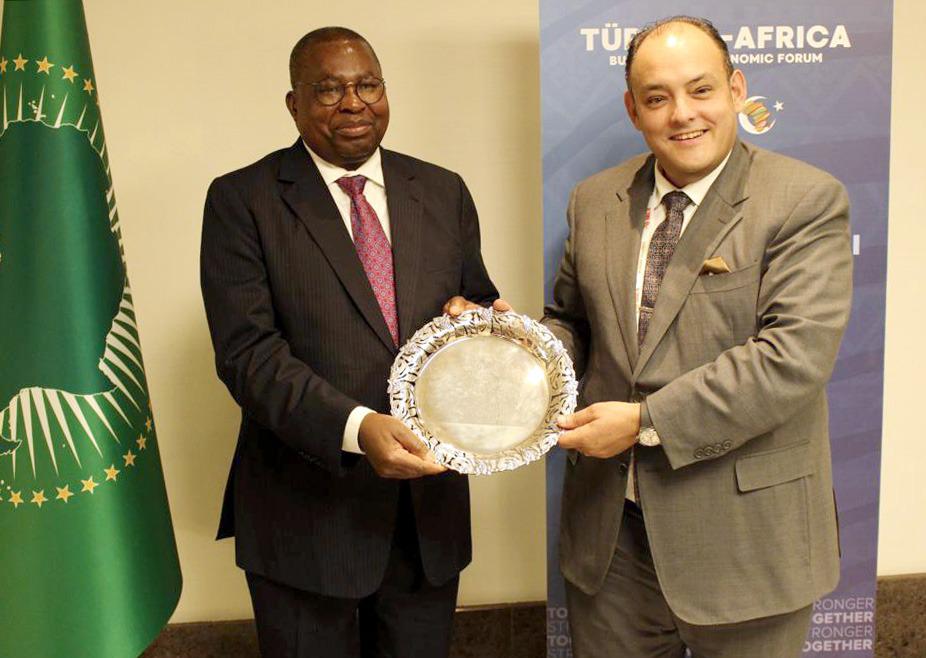 التقى المهندس أحمد سمير، وزير التجارة والصناعة السفير ألبرت موتشانجا مفوض التنمية الاقتصادية والتجارة والصناعة والسياحة والتعدين بالاتحاد الأفريقي وذلك على هامش مشاركتهما في فعاليات الاجتماع الوزاري للمنتدى الاقتصادي والتجاري التركي الأفريقي في نسخته الرابعة والمنعقد بمدينة إسطنبول التركية، حيث استعرض اللقاء عدد من ملفات التعاون المشتركة بين مصر والاتحاد.