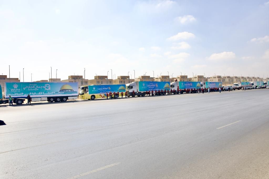 تنفيذًا لتوجيهات الرئيس عبد الفتاح السيسي ، بتقديم الدعم الفوري والإغاثة لدولة فلسطين الشقيقة، انطلقت صباح اليوم القوافل الشاملة للتحالف الوطني للعمل الأهلي التنموي وحياة كريمة، والتي تضم قرابة ١٠٦ قاطرة محملة بكميات ضخمة من المساعدات الإنسانية تتضمن 1000 طن من المواد الغذائية واللحوم و40 ألف بطانية وأكثر من 300 ألف علبة أدوية والمستلزمات الطبية، بالإضافة إلى الملابس والاحتياجات اللازمة، يرافقها طاقم طبي من كافة التخصصات كمحاولة لتخفيف الأوضاع على الشعب الفلسطيني جراء الاعتداء الإسرائيلي وسقوط العديد من الضحايا والمصابين.