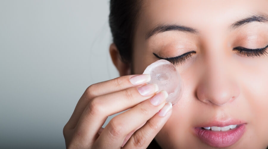 فوائد الثلج على البشرة، يقلل الالتهابات ويضيق المسام
