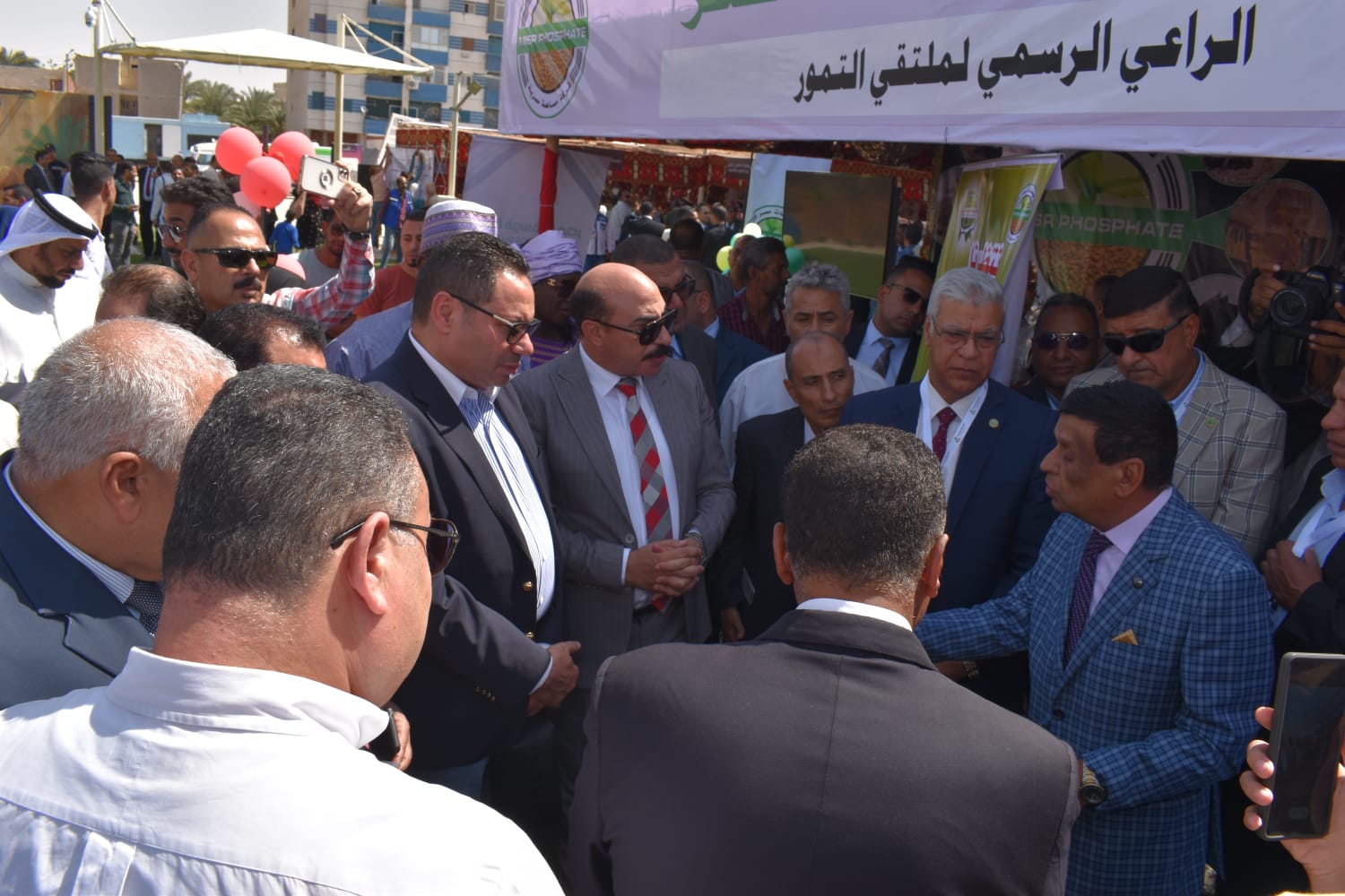 جاء ذلك خلال افتتاح اللواء دكتور محمد الزملوط محافظ الوادي الجديد وحنان مجدي نائب المحافظ، صباح اليوم، لفعاليات الملتقى التسويقي المصري الثالث للتمور الذي يقام على مدار يومي ١٤ و١٥ أكتوبر ٢٠٢٣، بحضور اللواء عصام سعد محافظ أسيوط واللواء خالد شعيب محافظ مطروح واللواء أشرف عطية محافظ أسوان والدكتورة إيمان ريان نائب محافظ القليوبية والدكتور عمرو البشبيشي نائب محافظ كفر الشيخ والدكتور أحمد سامي نائب محافظ سوهاج، والسفير محمد مارم سفير جمهورية اليمن، والسيد شيخنا إمباكي القنصل العام لدولة السنغال بجدة والدكتور محمود صقر رئيس أكاديمية البحث العلمي ولفيف من القيادات التنفيذية وأعضاء مجلسي النواب والشيوخ بالمحافظة. هذا ويشارك بالملتقى ٩٥ عارضا من الشركات والمصانع والجمعيات والمنصات ورواد الأعمال من محافظات الجمهورية وعدد من الدول العربية، كما تشمل الفعاليات عقد ورش عمل وندوات علمية في مجال زراعة النخيل والصناعات القائمة عليه.
