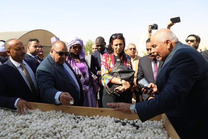 واستكمل المحافظ وضيوف الملتقى الجولة، بتفقدية مشروع واحة الحرير شمال مدينة الخارجة والتي تعد مشروع استثمار زراعي متكامل يضم مزرعة نخيل تحوي ١٠ آلاف نخلة ومزرعة سمكية ومعمل لإنتاج الحرير الطبيعي ومزرعة نعام وصوب زراعية لإنتاج الخضراوات.