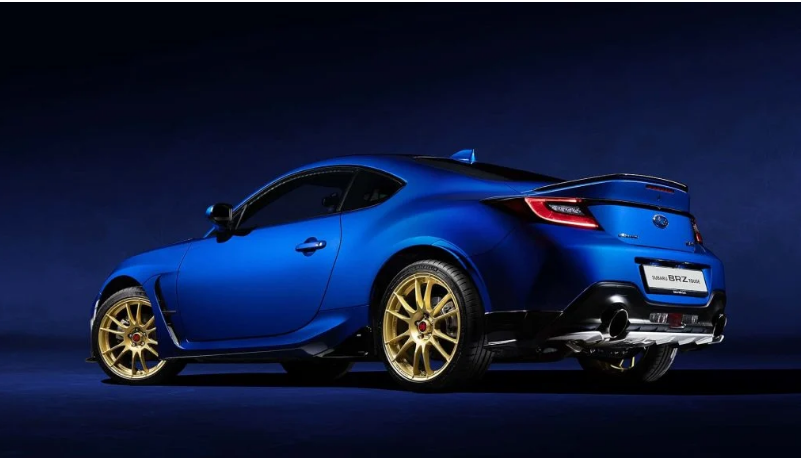 وفي الخلف، تنتمي فتحات العادم المزدوجة إلى نظام سوبرسبرينت إيطالي الصنع مع تشطيبات خاصة تتميز بحروف سوبارو BRZ توجا.