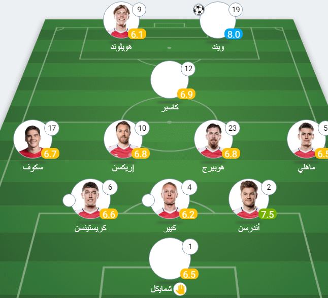 خط الوسط: ماهلي، هويبرج، اريكسن، سكوف