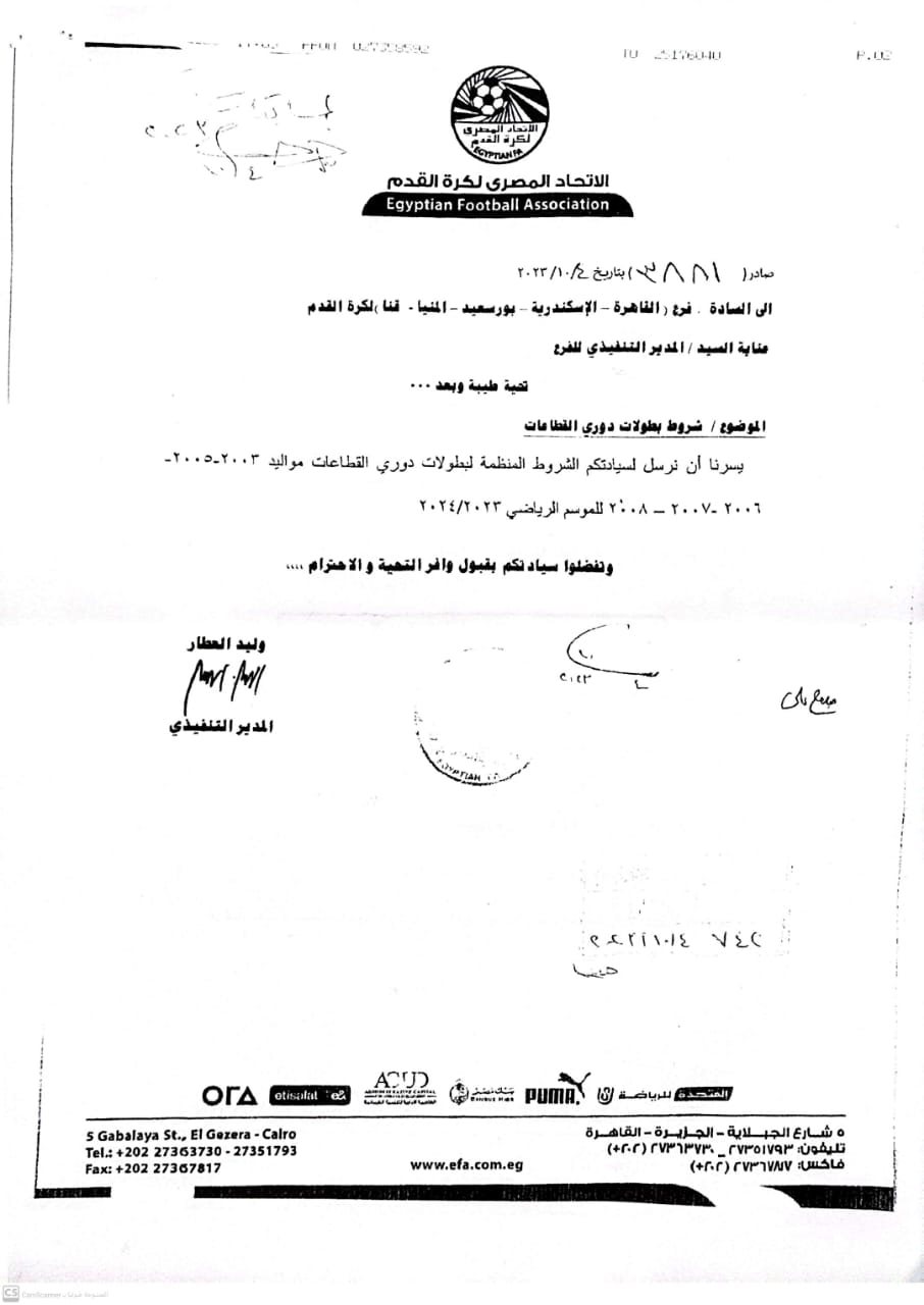 وأخطر اتحاد الكرة، الفروع التابعة والفرق المشاركة بالشروط المنظمة لبطولات دوري القطاعات للناشئين للموسم الرياضي 2023-2024.
