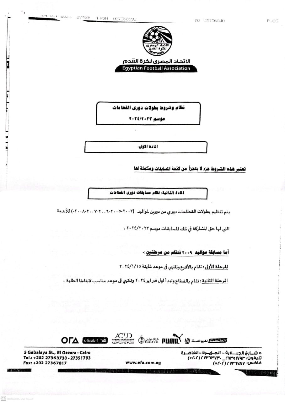 كما أكد اتحاد الكرة أن مسابقة مواليد 2009 تقام بالأفرع وتنتهي في موعد غايته 15 يناير 2024 بالمرحلة الأولي، ثم تقام المرحلة الثانية بالقطاع وتبدأ أول فبراير 2024 وتنتهي في موعد مناسب للطلبة.