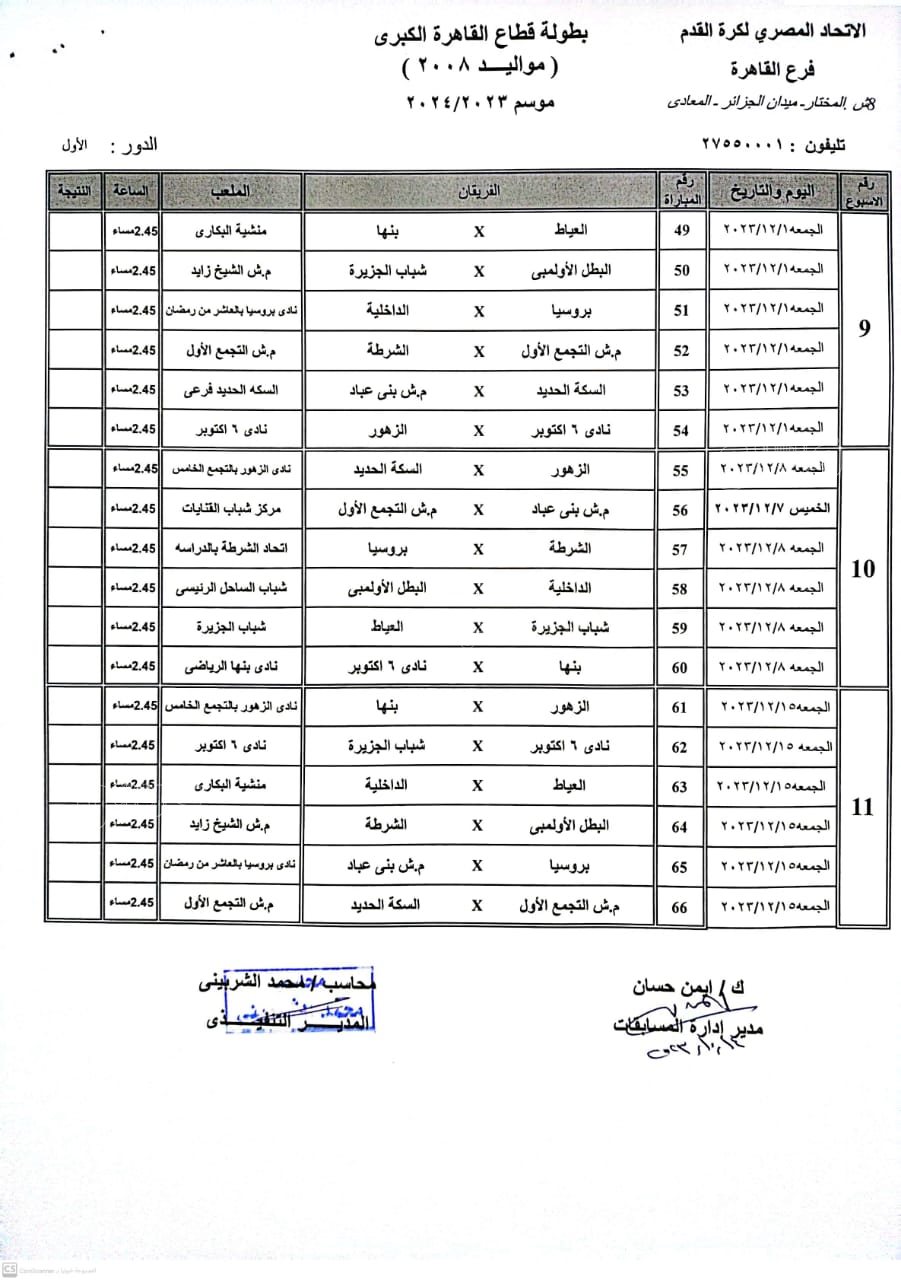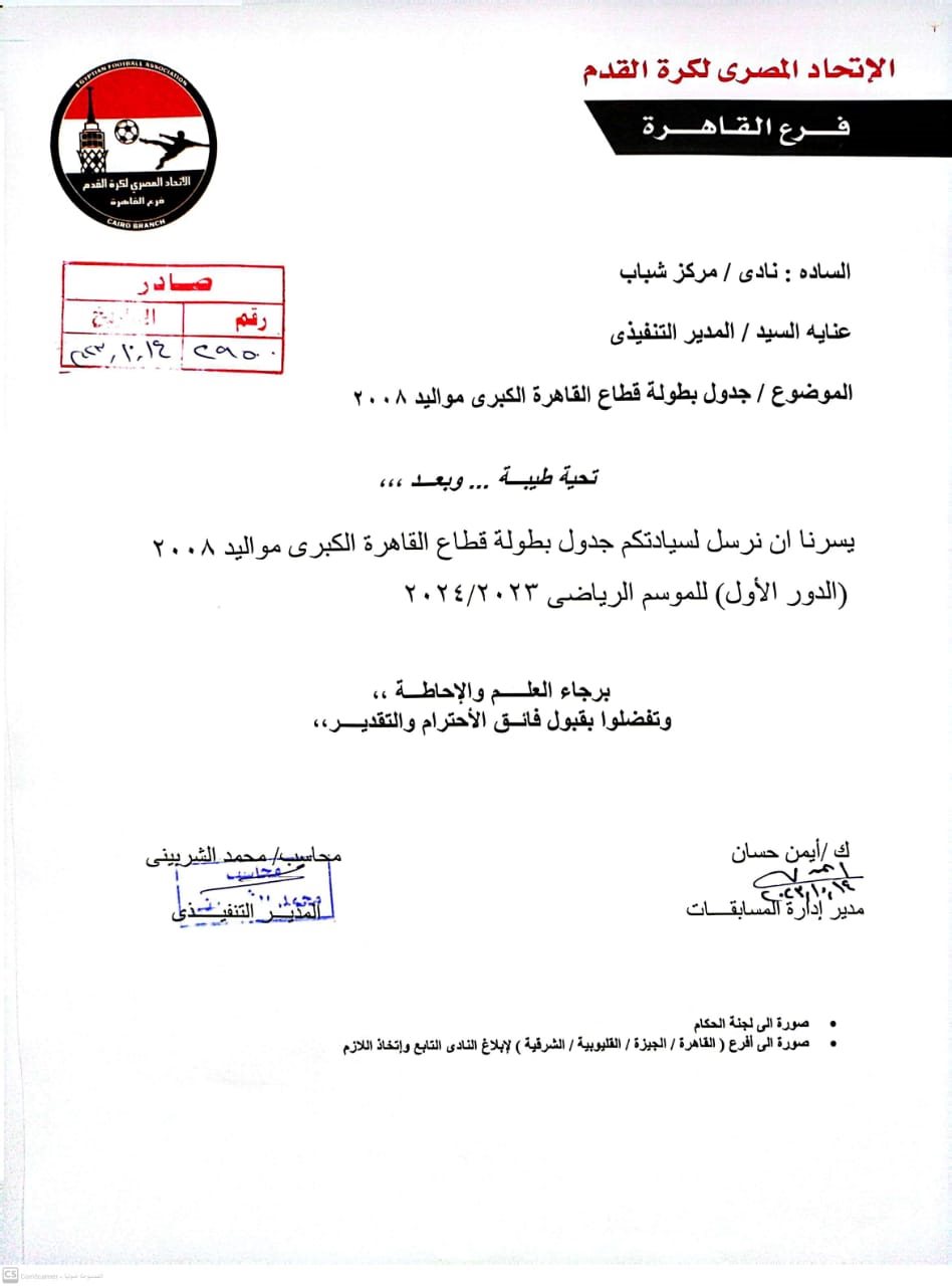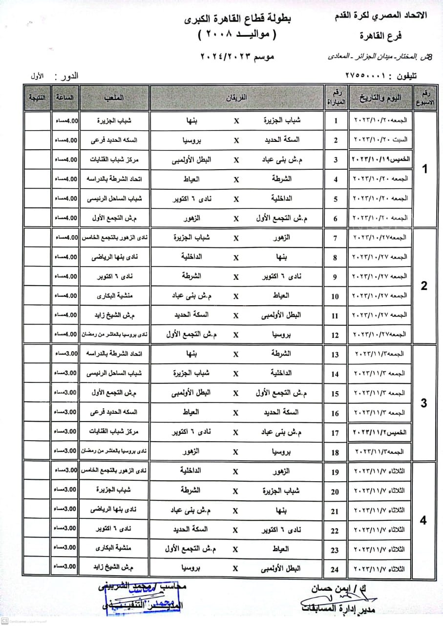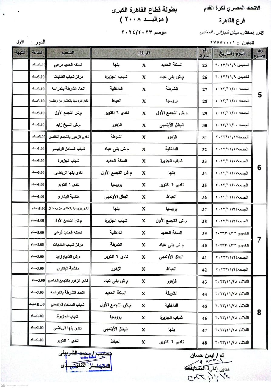 جدول مباريات دوري قطاع القاهرة الكبري للناشئين مواليد 2008