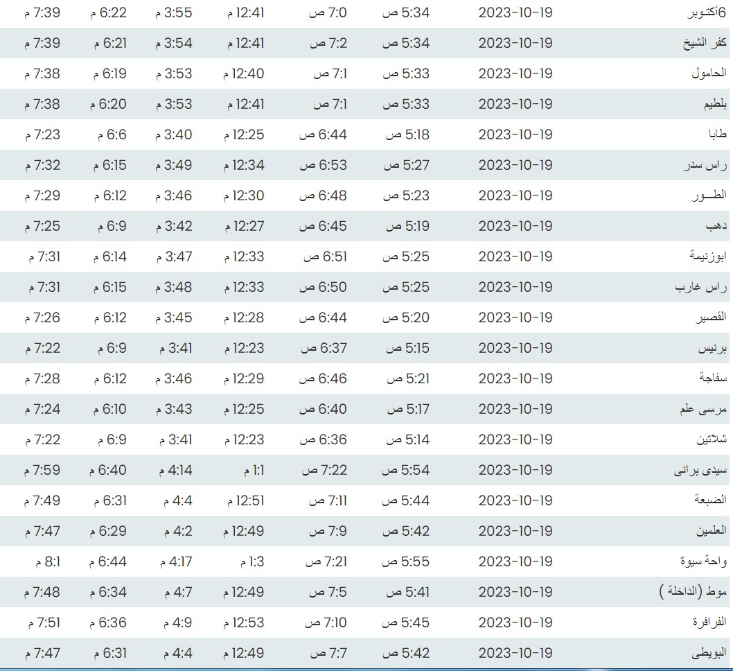 مواقيت الصلاة اليوم بتوقيت أسيوط
