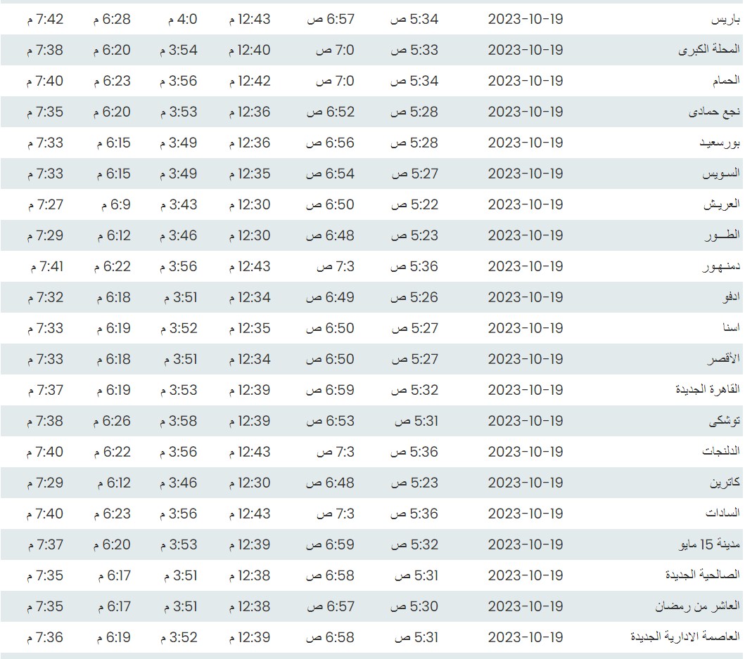 مواقيت الصلاة اليوم بتوقيت القاهرة